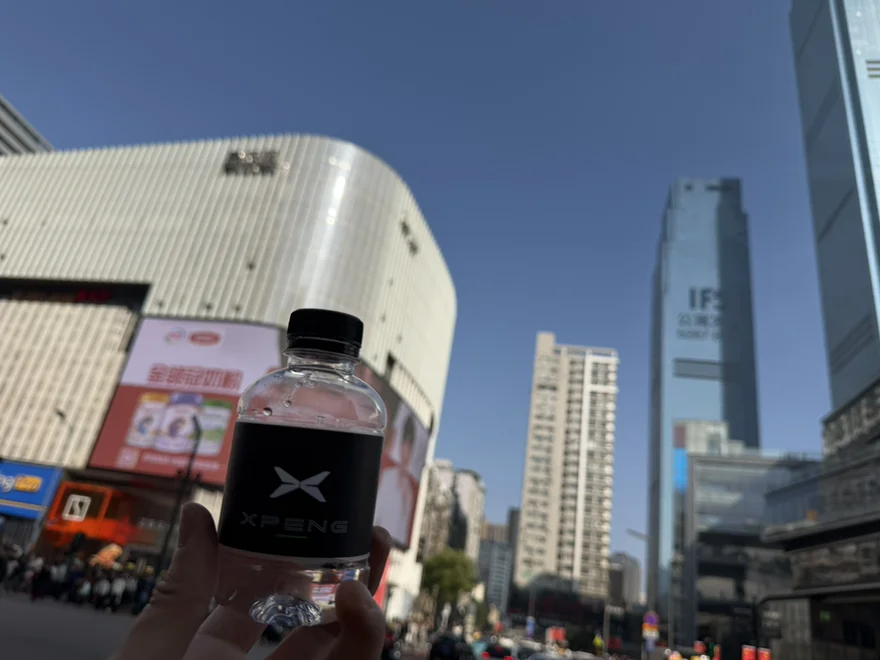 走到国金中心地标下,我拿出小鹏饮用水,完成打卡。这瓶水跟着我走完千里自驾,从广西到长沙,见证了一路行程。举着它与地标同框,既是记录旅途,也是鹏友身份的小仪式,简单一张照片,定格当下的抵达与圆满。