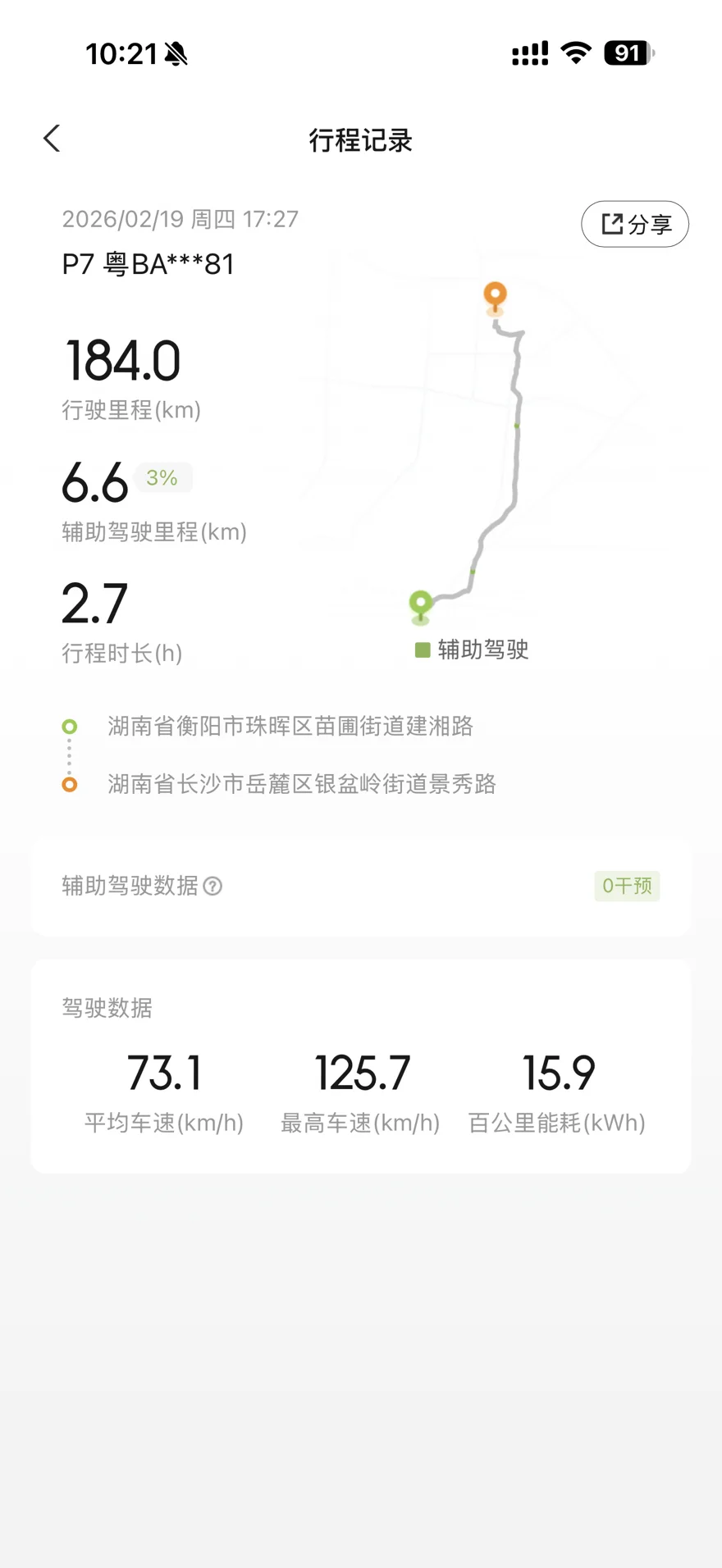 春节长假带着父母,开小鹏P7从广西出发,经茂名、贺州、衡阳一路向北,边走边玩,全程已行驶1000公里。一路风景相伴,家人同游温馨惬意。