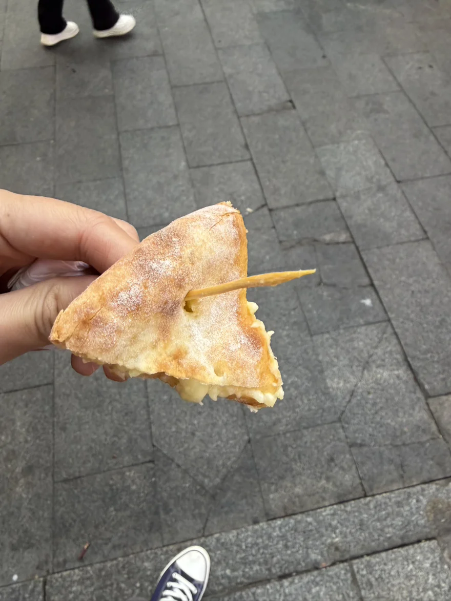 长沙特色榴莲酥煎饼,外皮酥脆,内馅绵密香甜,榴莲味浓郁。一口咬下去超满足,是让人印象深刻的街头美味。
