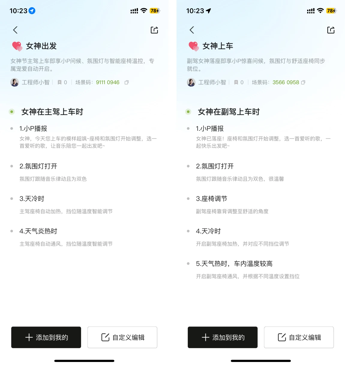 2. 场景码分享:为女神节设置一个相关的智能座舱智慧场景,分享智慧场景码;