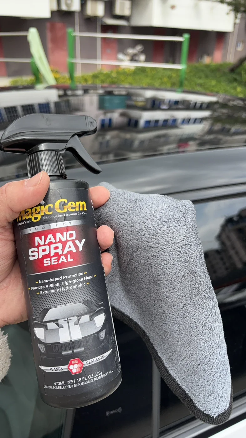 最后用吸水毛巾擦干,简单擦点车蜡,洗完立马亮到反光!