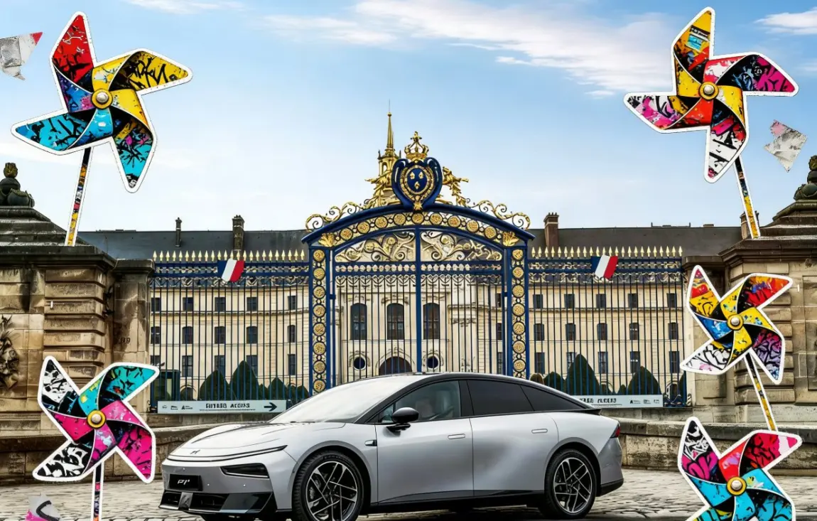 把折纸骏马和香芋紫汽车做马卡龙撞色涂鸦,拼贴艺术展览剪报,适配车尾,打造轻奢街头艺术风。