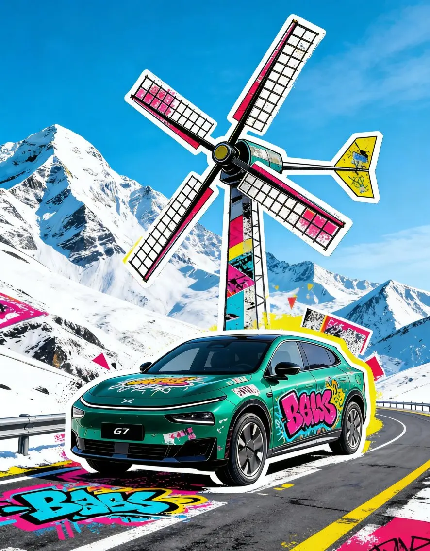 本次系列根据小鹏的所有车型:P7、G6、G7、G9、M03、X9、以及AI小P和机器人IRON根据我喜欢的潮流的涂鸦拼贴风,设计了9张车贴图片,根据以下内容和大家分享图片和我的创作理念!