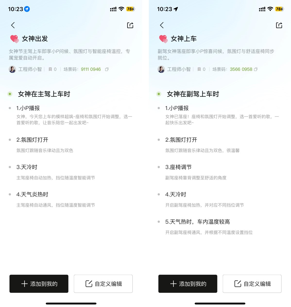 这个场景不仅适合女神节,平时开车也能给她满满的宠爱。快把这个场景码分享给身边的鹏友,一起用智慧场景,给女神们制造更多惊喜吧~