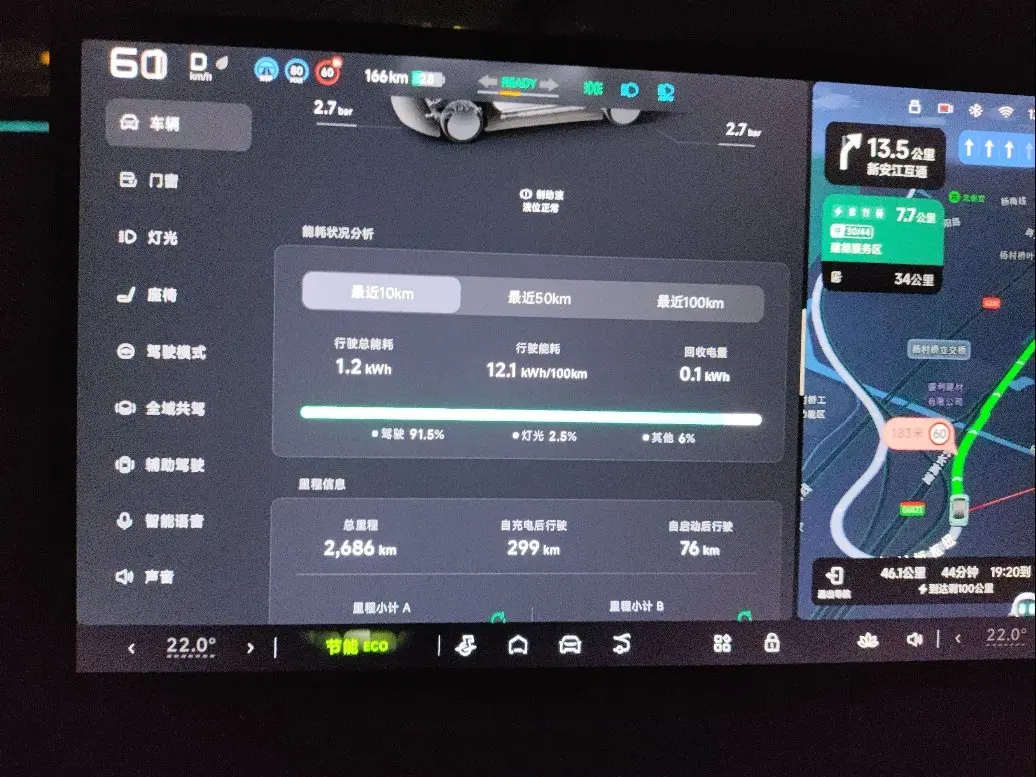 高速开NGP,设置车速不超105,百公里电耗不变13kwh