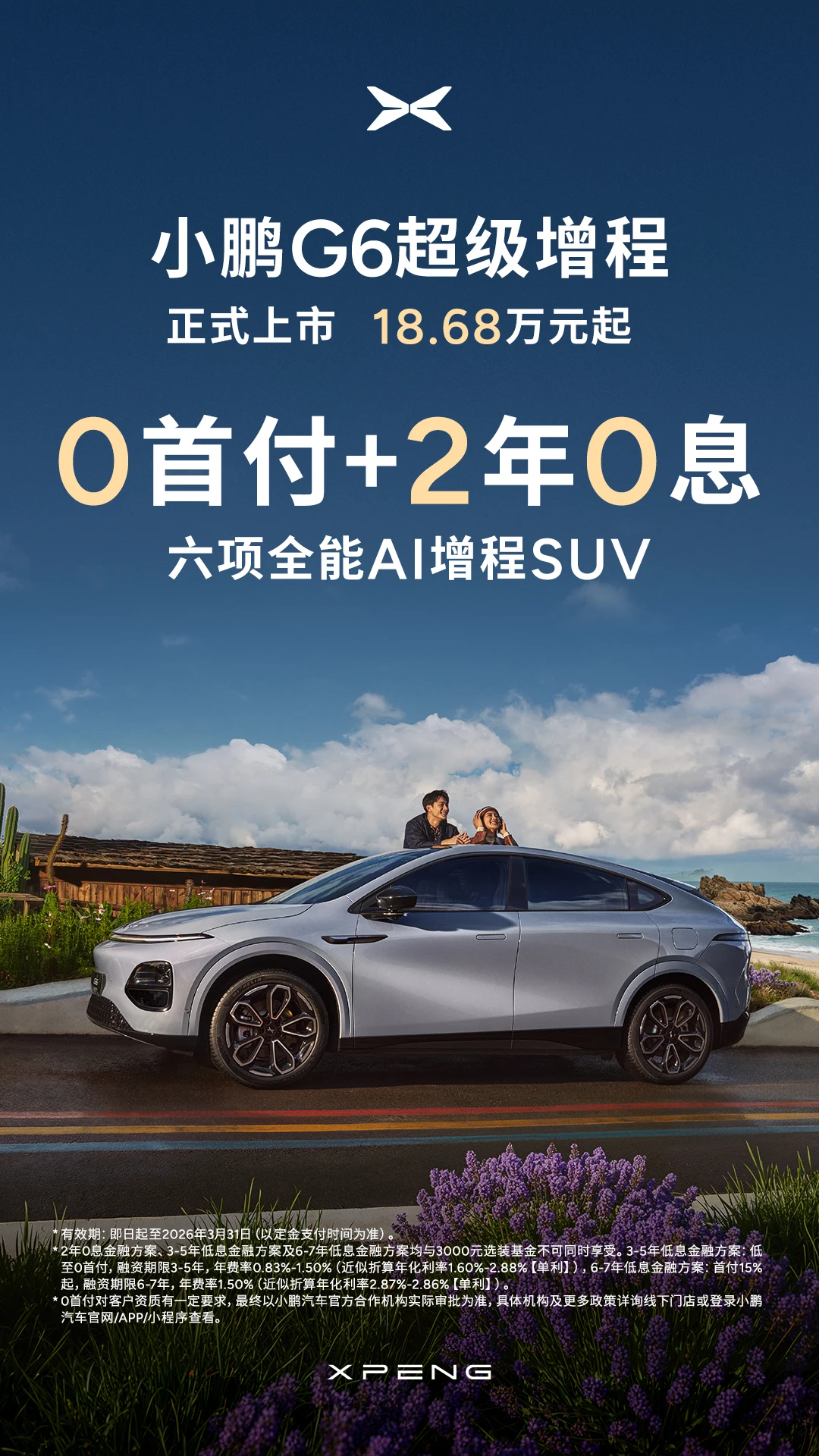 2026款小鹏G6超级增程正式上市!0首付+2年0息