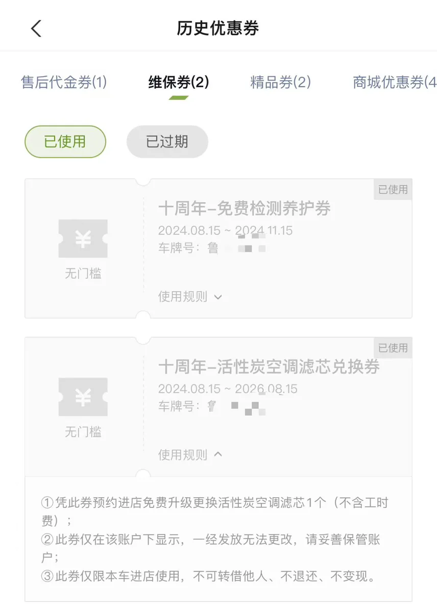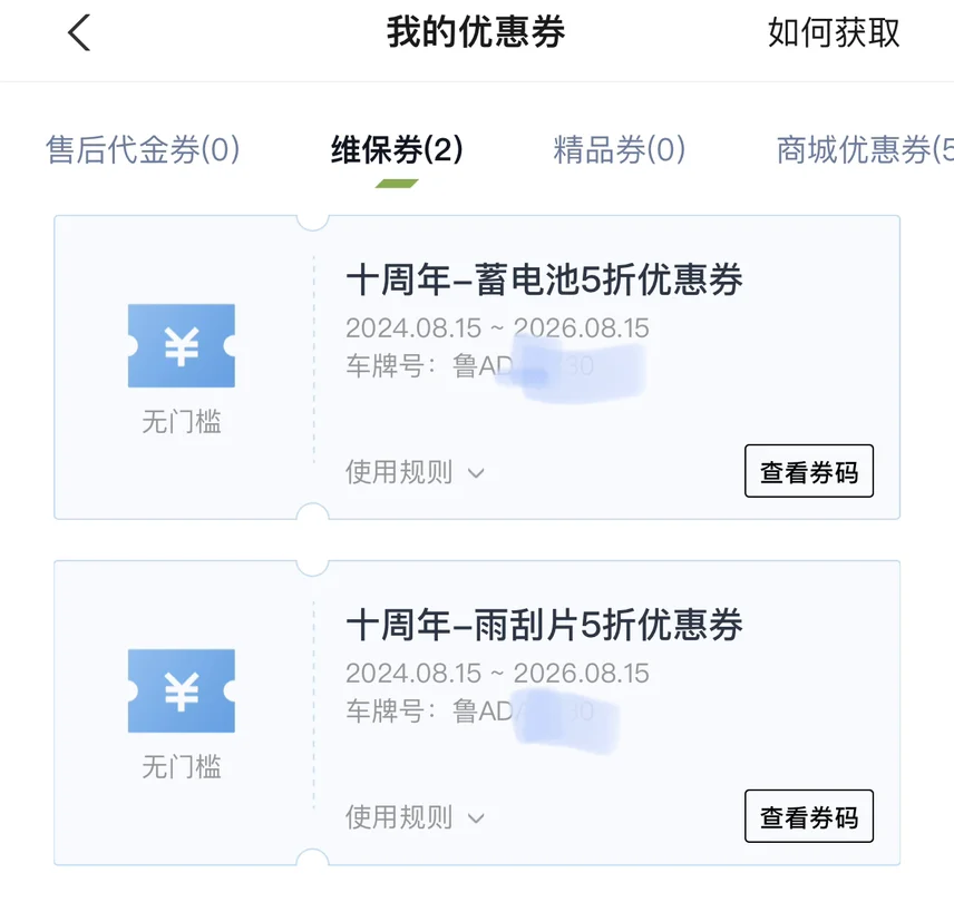 春雨频繁,洗车时用清水擦拭雨刮胶条,能延长寿命。我看了下维保优惠券,还有雨刮和蓄电池的优惠券呢👇🏻这羊毛得薅😊