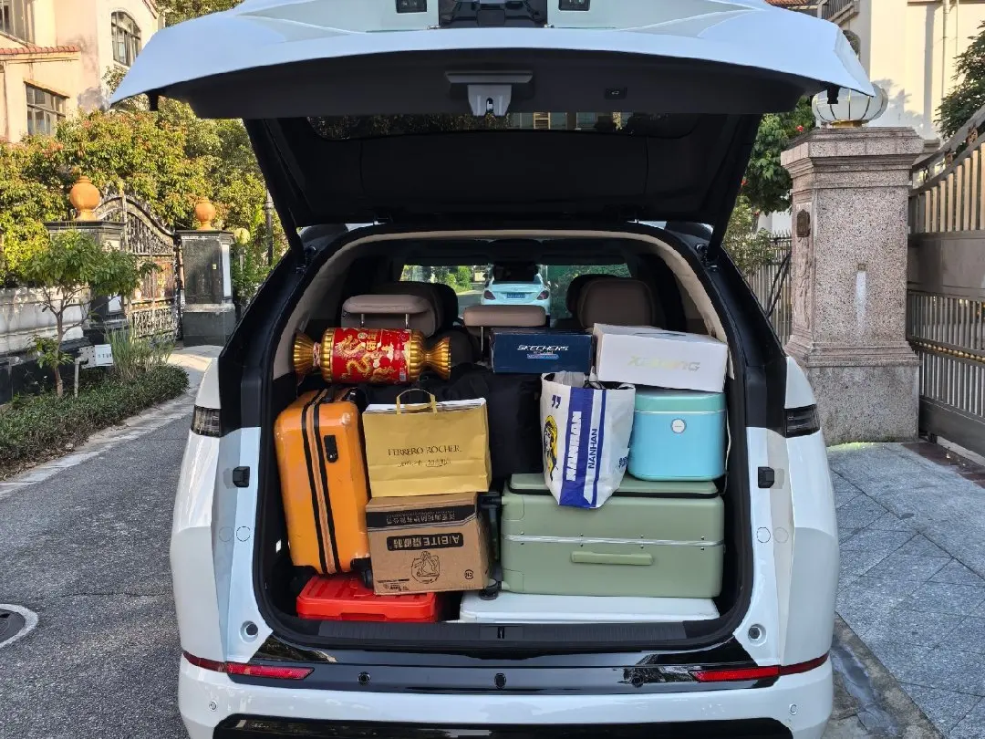 后备箱直接被我塞成“移动年货仓”,一家五口的行李箱、给爸妈带的补品、年货,轻松装下。一家人坐进去也宽敞。