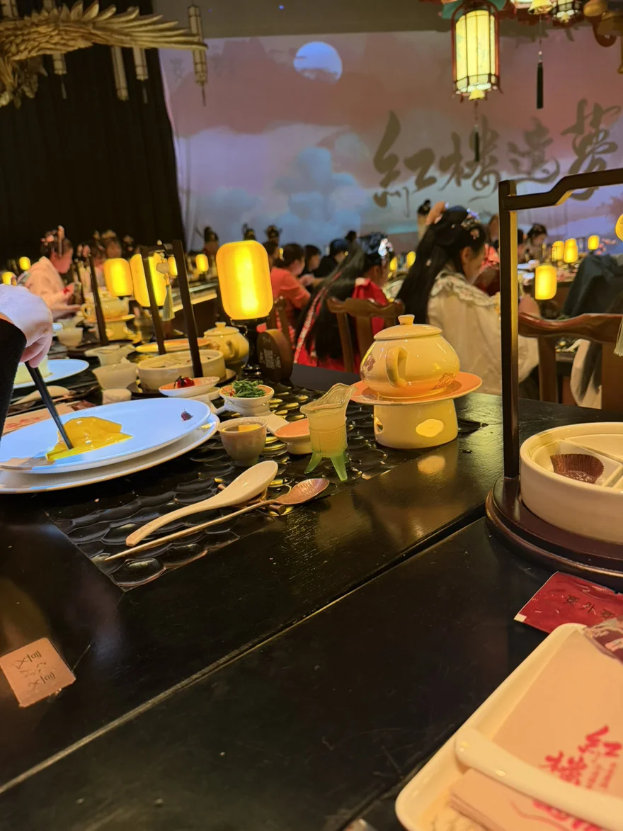 感受红楼文化和不一样的江南宴席。舞台精美小姐姐很专业,后来打听原来真的是北京和上海音乐学院的学生。