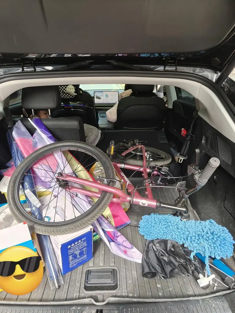 小鹏G6后备箱真大!虽然咱不是MPV,但是自行车🚲装进去还是轻轻松松的,主打一个家用车🚗实用!孩子骑行🚴🏻♀️一步到位。