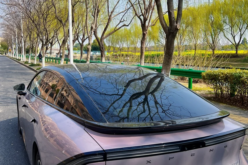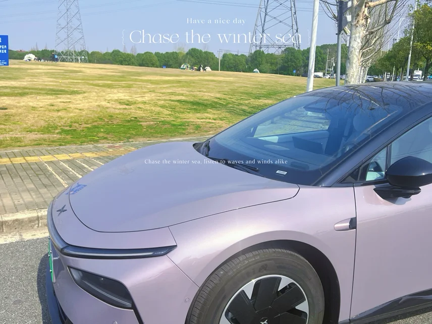 翻开手机相册,昨日踏青的照片还在微微泛着光。小鹏P7+静静地泊在那片新绿的背景里,流线型的车身沾着几片早樱的花瓣,像是春天偷偷盖下的印章。照片里的它,不像一辆车,倒像一位赴约而来的故人,静静地听风说着去年的故事。