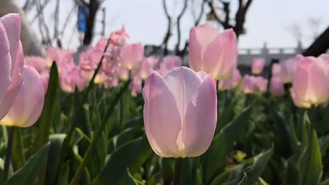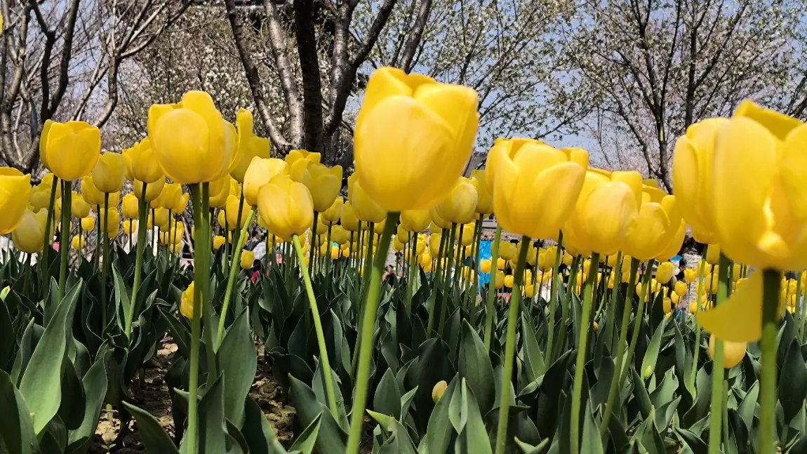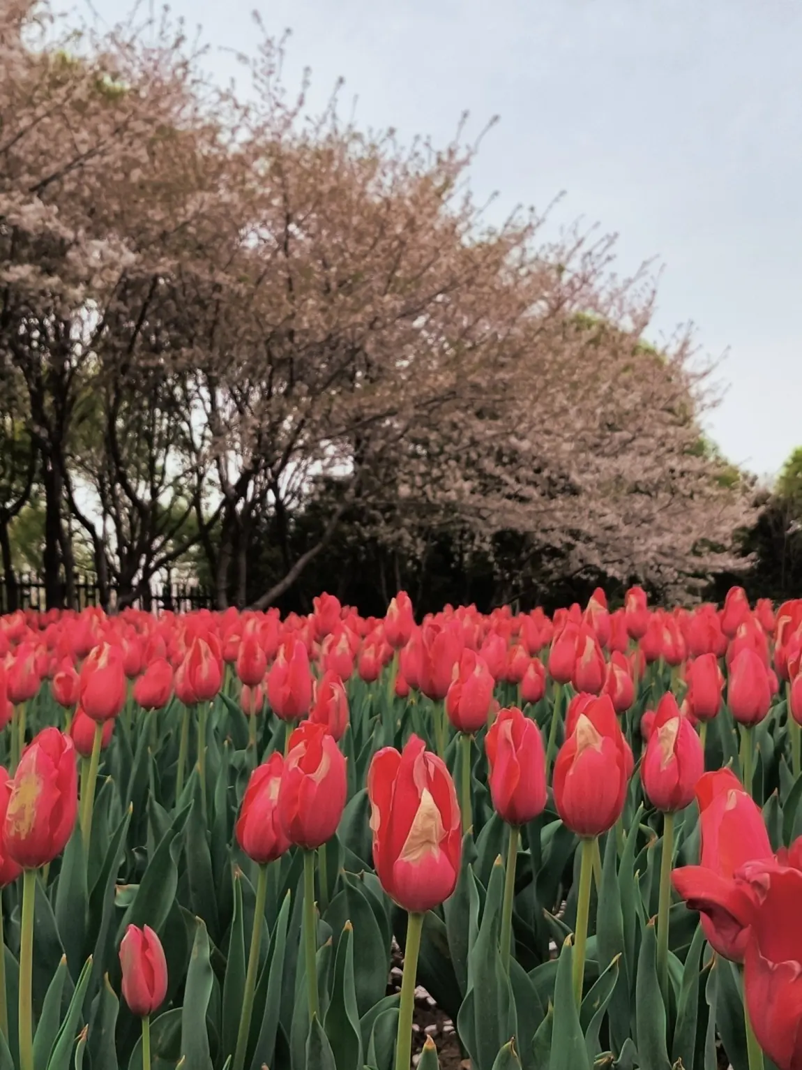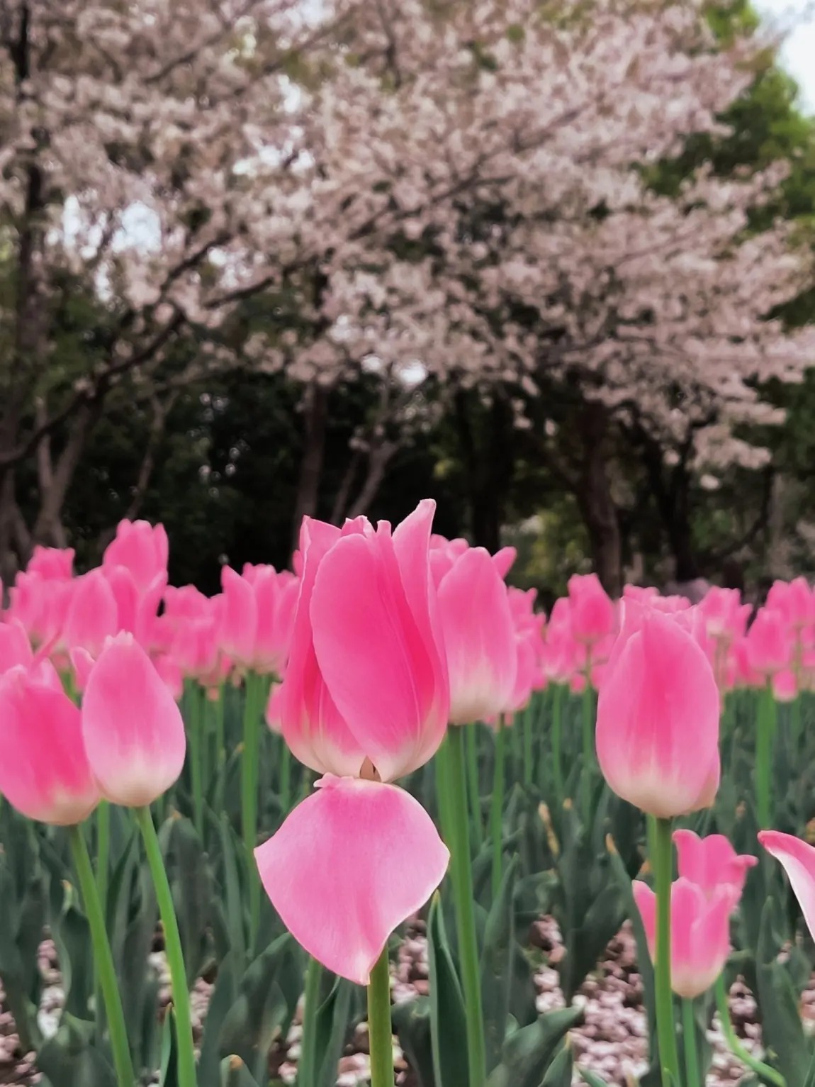 穆湖森林公园的郁金香更野趣!粉郁金香和樱花树“撞了个满怀”,粉花配粉樱,梦幻得像走进童话,黄郁金香像小太阳一样炸眼,随便找个角度拍,都是“春天限定”的氛围感!