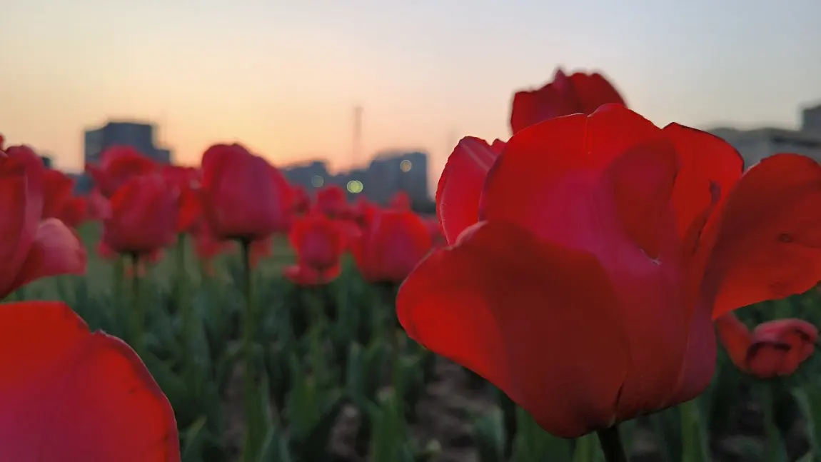 姚家荡公园的郁金香是“氛围感王者”!夕阳下的红郁金香像燃烧的火焰,橙黄渐变的像把春天揉成了暖调,花田边就是穆湖,湖水倒映着花海和蓝天,风一吹,花瓣晃啊晃,空气里都是甜丝丝的味道~