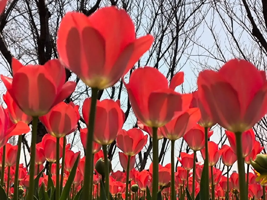 现在(3月中旬)正是盛花期!姚家荡的红色系超有气势,穆湖的粉色系最出片!穿浅色衣服更搭,草地上铺个野餐垫,和郁金香、樱花合个影,春日仪式感直接拉满~