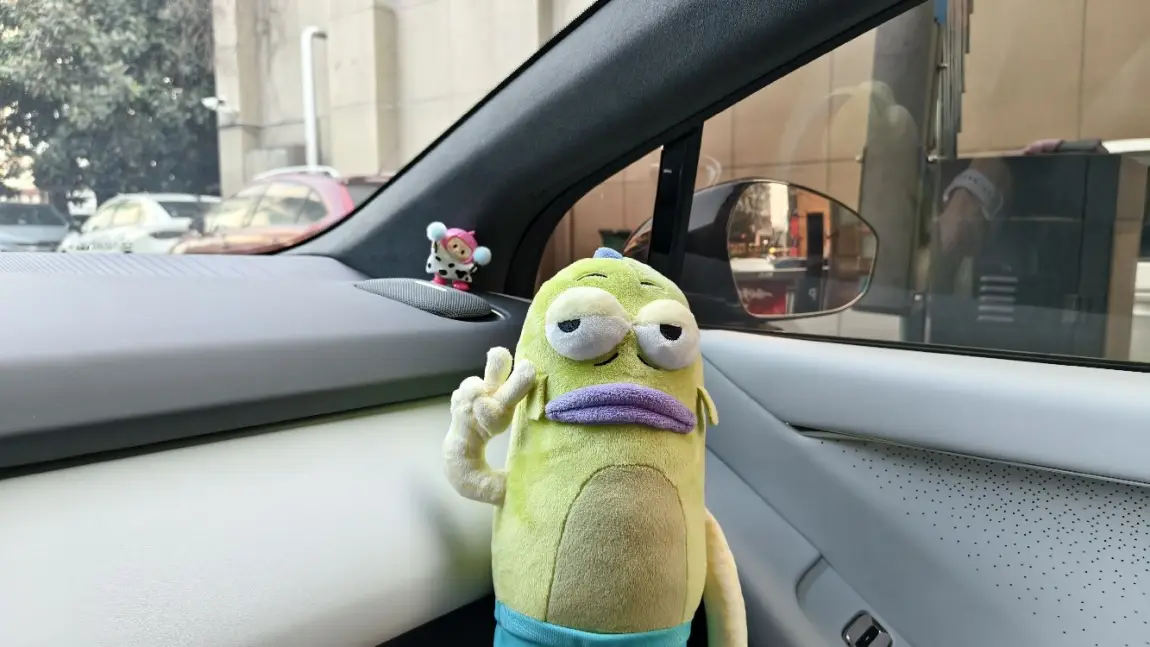 谁懂啊!超中二又超治愈的比奇堡居民,被我请进了车里~ 一脸元气地比着耶,往P7+的中控旁一放,瞬间点亮整个车厢!每次上下车、等红灯时抬头看见它,所有的烦躁都被这张笑脸融化,女生的快乐真的好简单✨