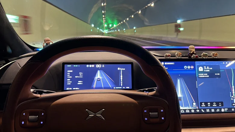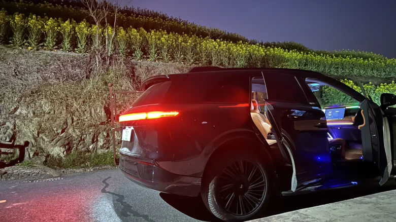 我把G9停在梯田观景台旁,打开座椅按摩,躺在副驾透过全景天幕看花海。车内的香氛系统释放出淡淡的木质香,和油菜花的清香交织在一起。儿子坐在驾驶位,兴奋地用语音控制打开氛围灯,橙红色的灯光和窗外的金黄花海相映成趣,幸福感瞬间拉满
