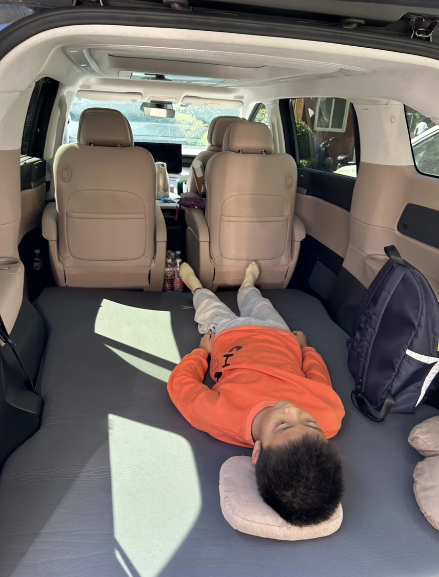 往花树下一放,整个人陷进去,看孩子在草地上疯跑,轻便好带,一充气就能用,是春日野餐的灵魂装备!春节参加小鹏活动,获得了懒人沙发😊正好派上用场😃