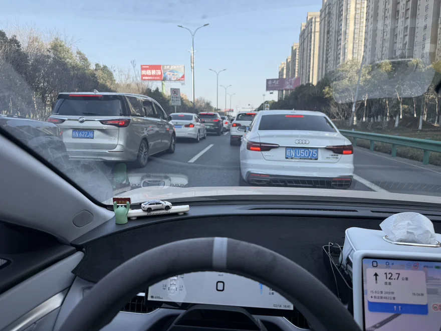 3月7日的那趟行程,我带娃去乡下探亲,国道路程因为堵车,16km居然开了49分钟,平均车速30码好辛苦,看了一下车机显示百公里能耗11.8kWh,这个成绩我自己还挺满意,因为毕竟是春天刚过完冬,电池活性还没完全“醒”过来,能有这个表现,多亏了平时养成的“佛系驾驶”习惯。提前预判红绿灯,少踩急刹。市区里尽量保持30-40km/h的匀速,不猛冲猛停。