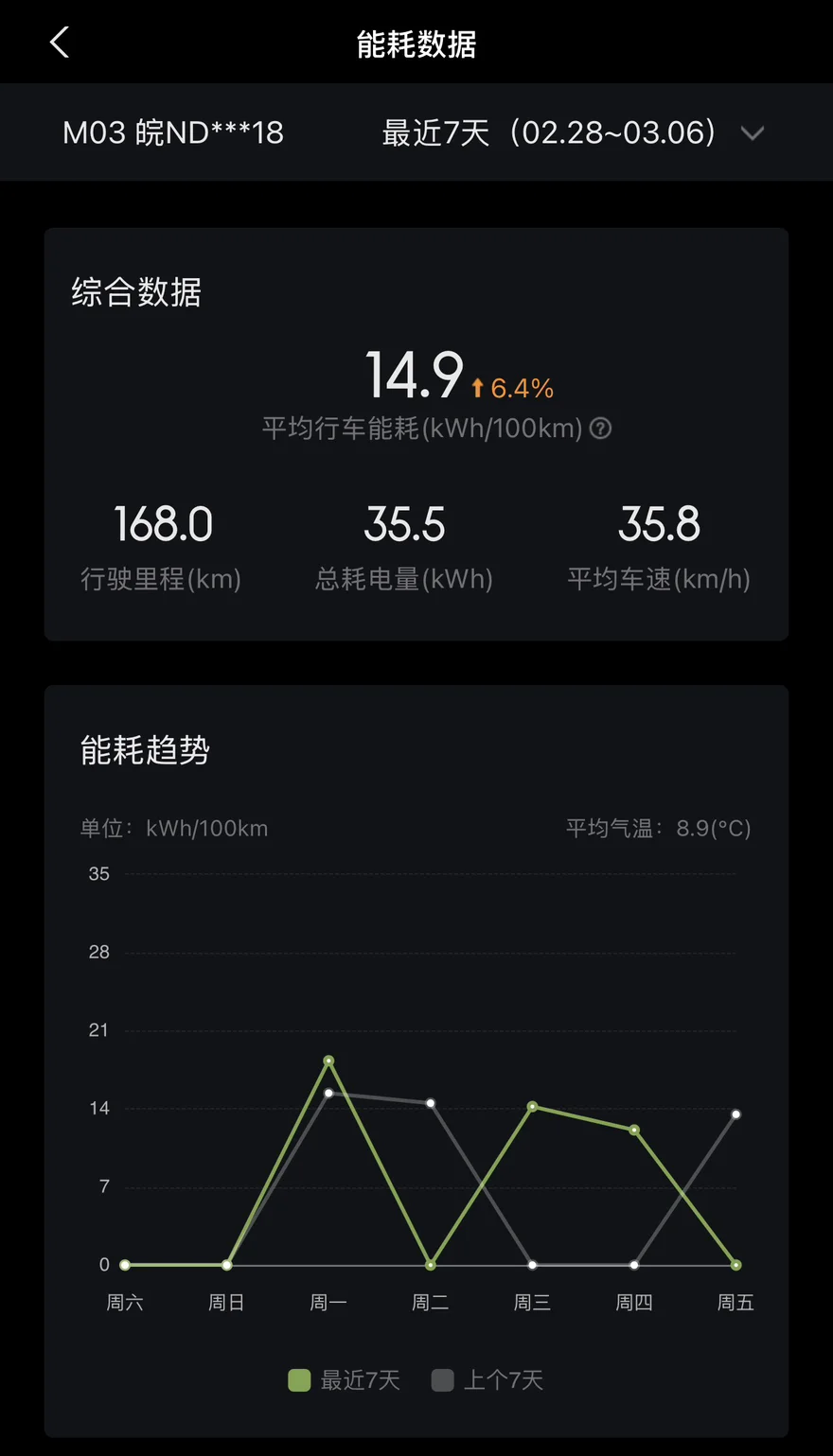 📊 最近一周能耗平均14.9,比上个周期上涨6.4%
