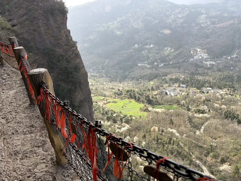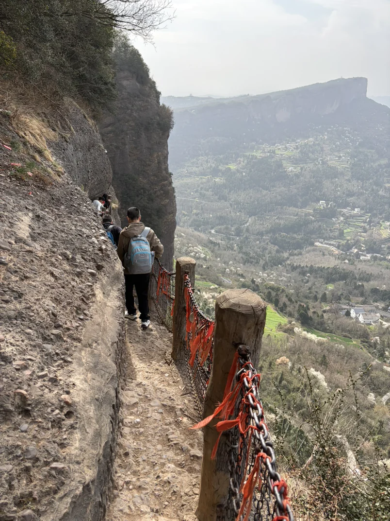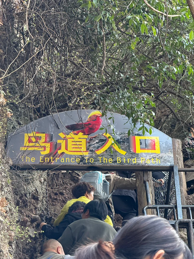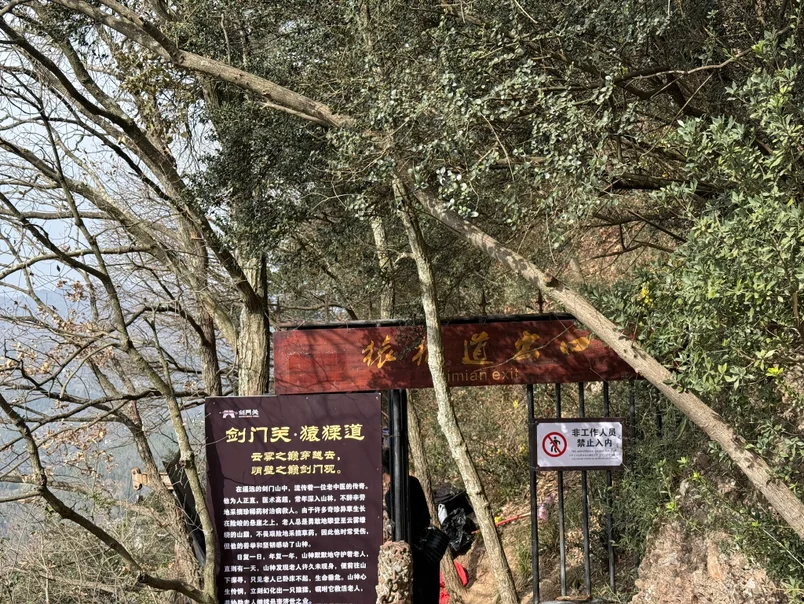 此后前去剑门关,挑战李白口中的蜀道难,非常的惊险刺激,西当太白有鸟道,可以横绝峨眉巅。黄鹤之飞尚不得过,猿猱欲度愁攀援。这两句诗只有去过的人才能完整体会到李白诗中所描绘的意境。我们胆子小选择了相对较为安全的鸟道,但也是非常的凶险,抓着铁链只能一人通行,步梯基本是90度上行的角度,走在上面才能大声喊出那句,蜀道难,难于上青天。