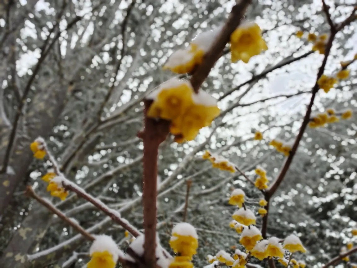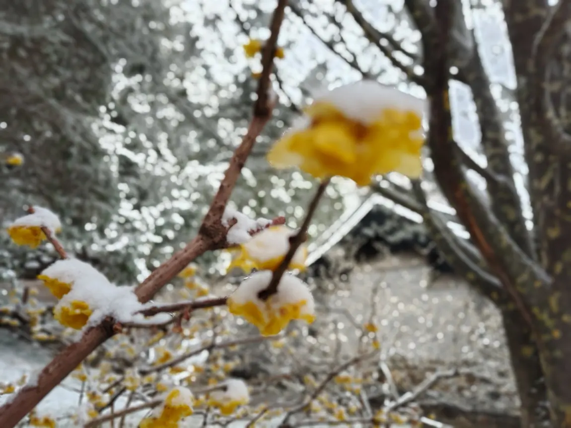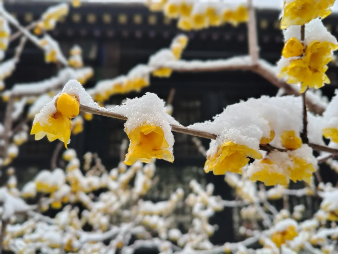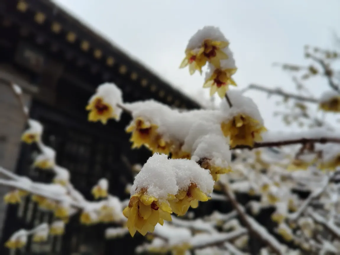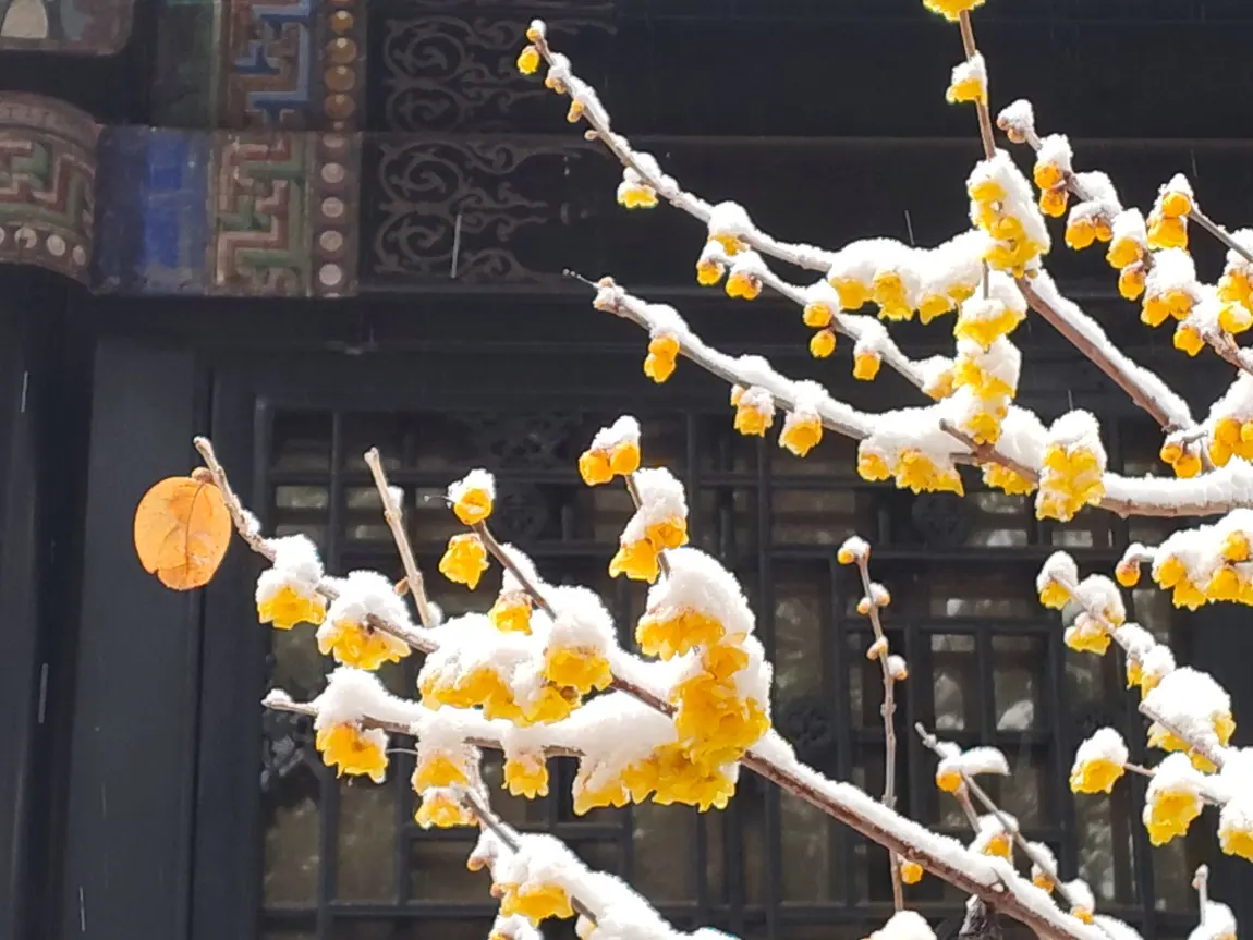 倒春寒 颐和园腊梅雪中绽放