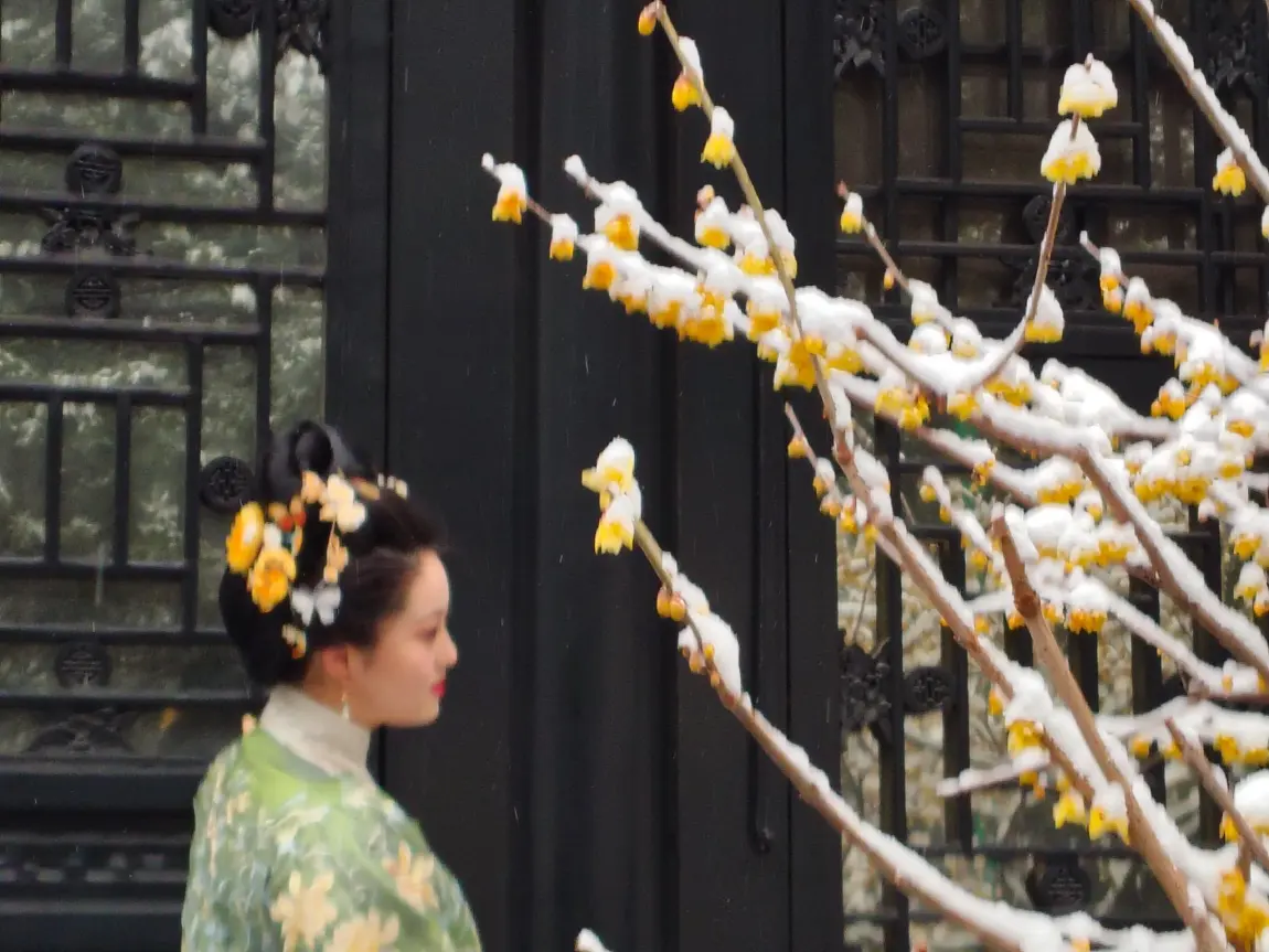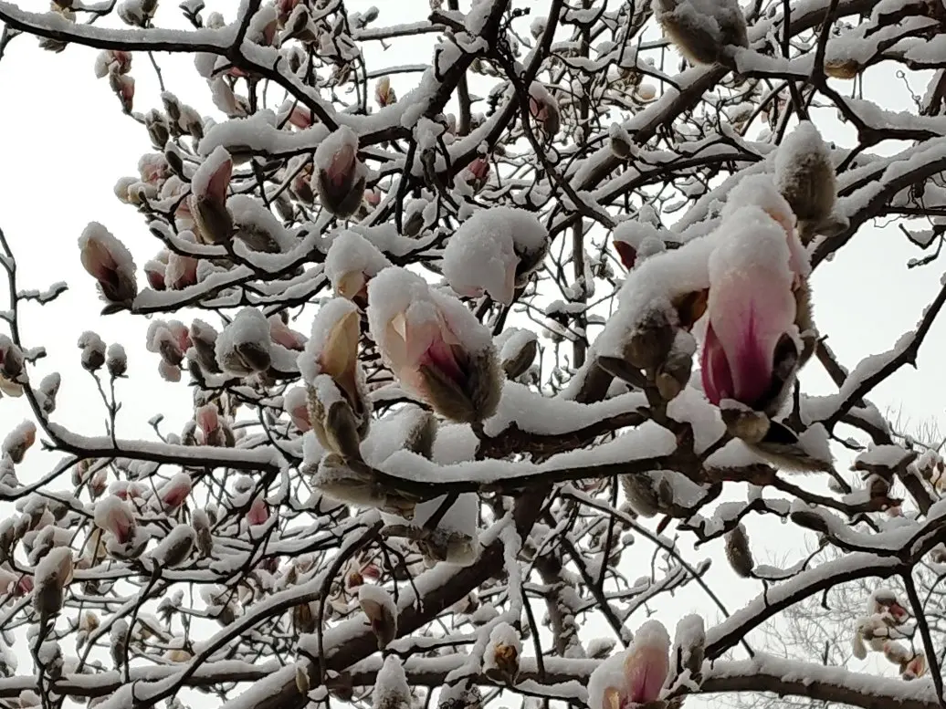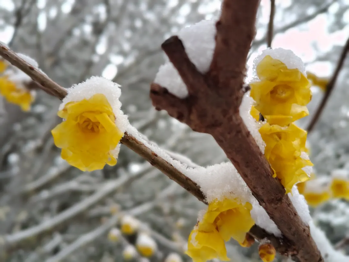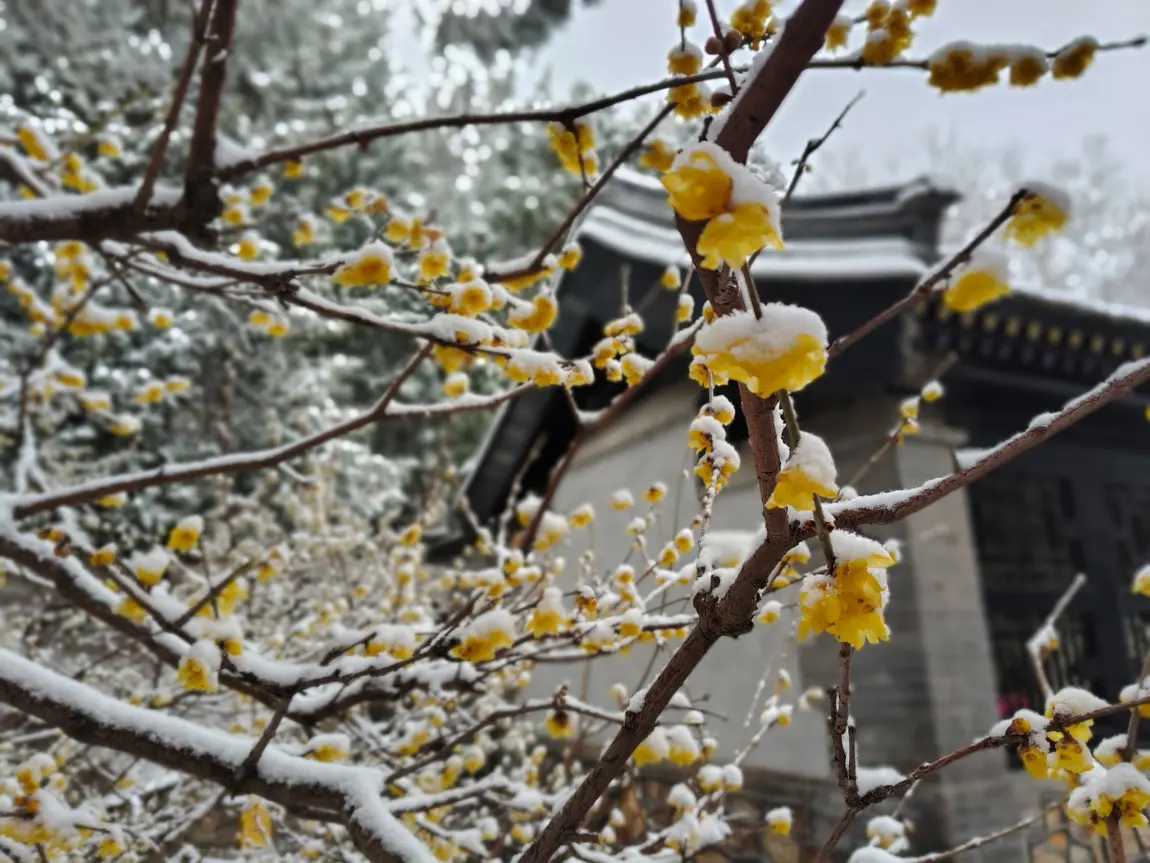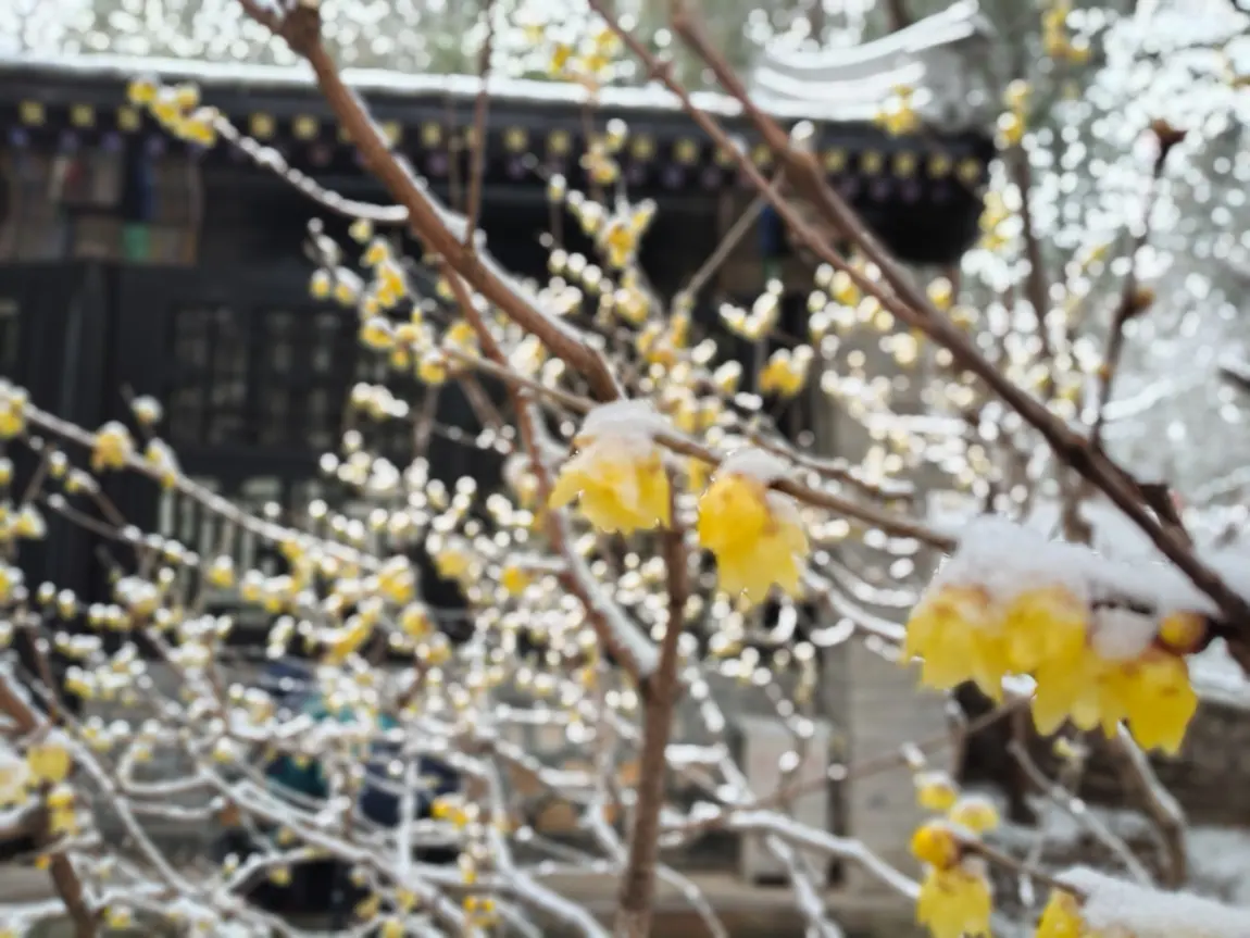 倒春寒 颐和园腊梅雪中绽放