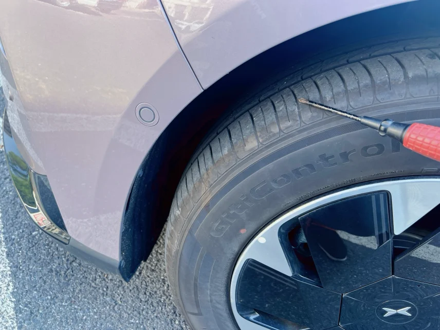 轮胎是个容易被忽略的细节。 冬天气压低,现在回暖后胎压会自然上升一些。我将气压调整到了2.5,开起来既舒适又不费电。对了,冬天轮胎花纹里卡的小石子,也该清理一下了——它们可是静音轮胎的隐形杀手。