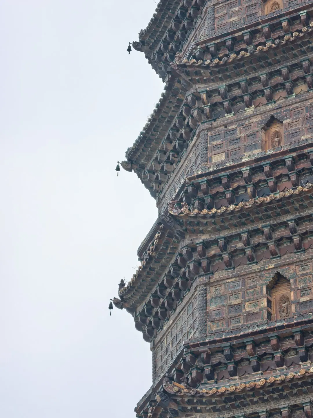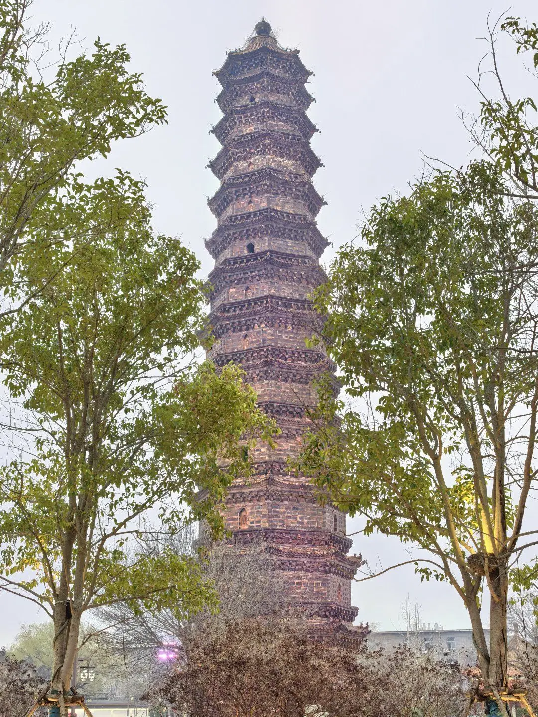 tips💡:铁塔并非铁做的,而是因其通体覆盖的褐色琉璃砖远看如铁锈得名的