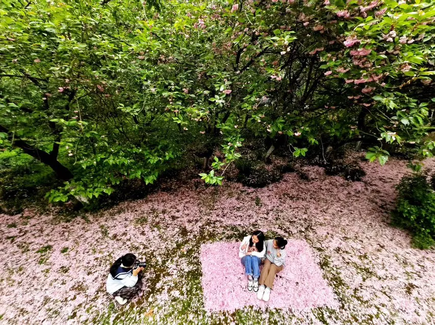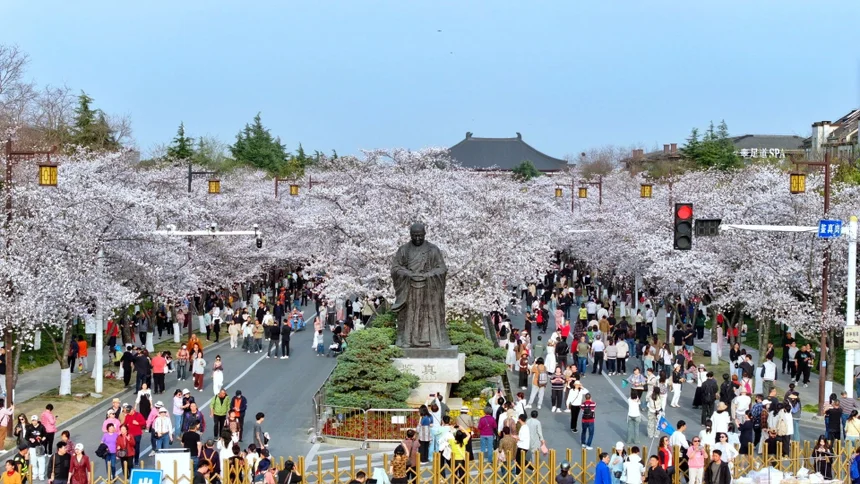 • 技巧:在斑马线处低角度仰拍,把满树繁花和人物同框,氛围感直接拉满;在图书馆门前,朱红飞檐搭配樱花,禅意与温柔撞个满怀。