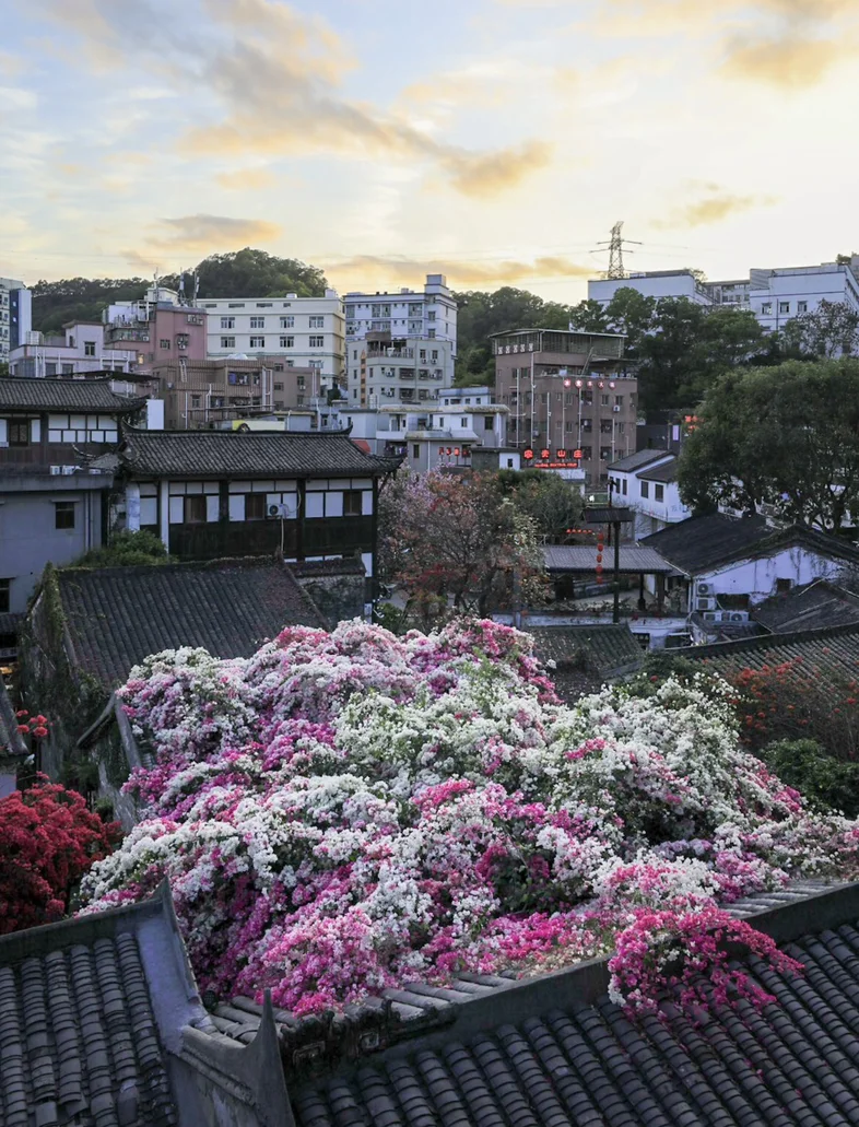 深圳的话推荐到甘坑古镇看看风铃木三角梅,吹吹风,把负能量通通吹走