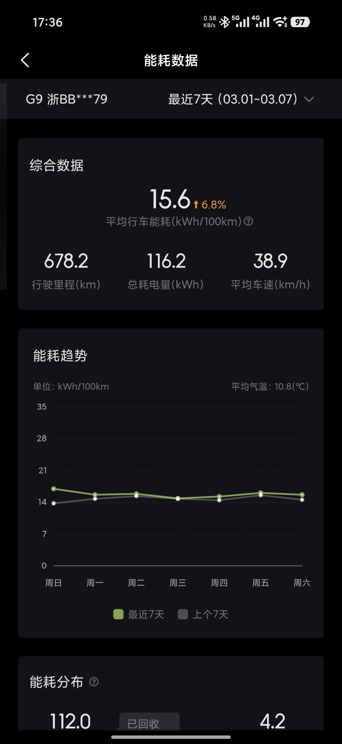 小鹏G9这么大一辆车的能耗的确出乎我的意料,虽然现在3月份的天气还比较冷,而且雨水也非常多,但是这么低的能耗的确让我对小鹏G9的续航信心十足。
