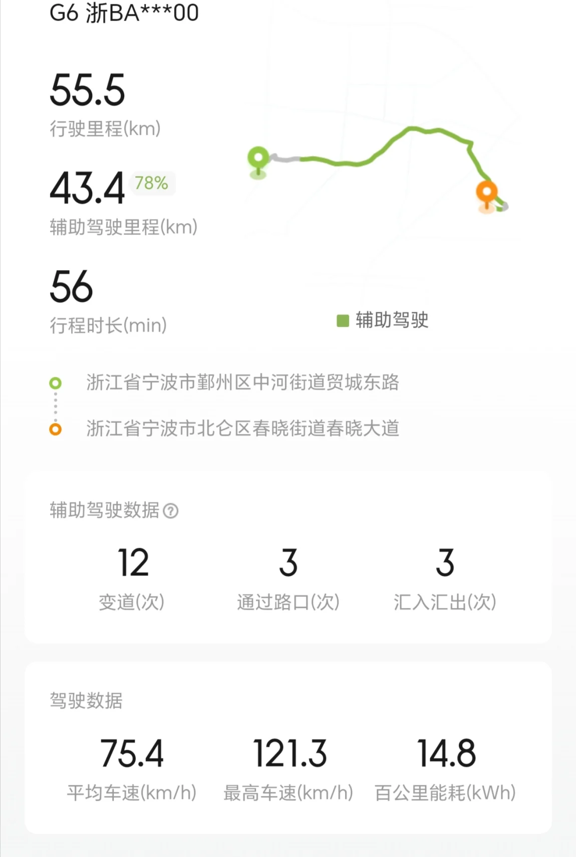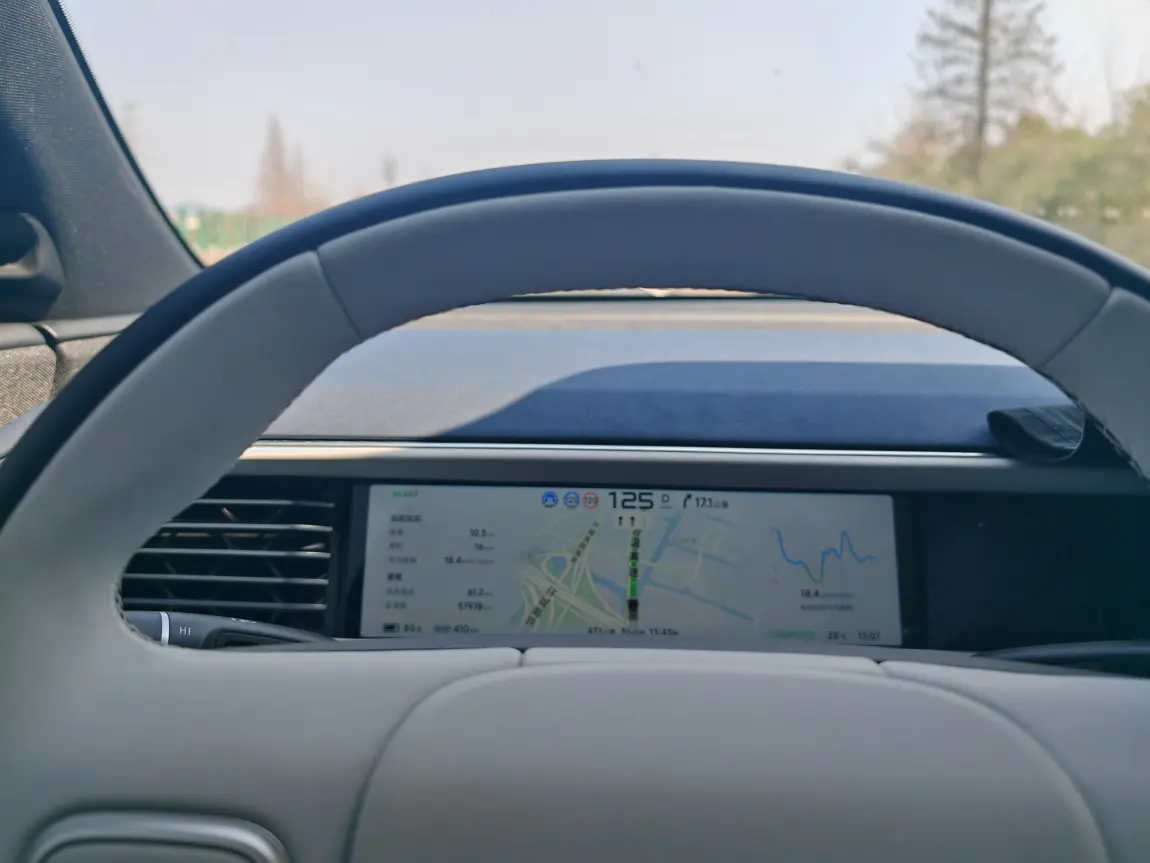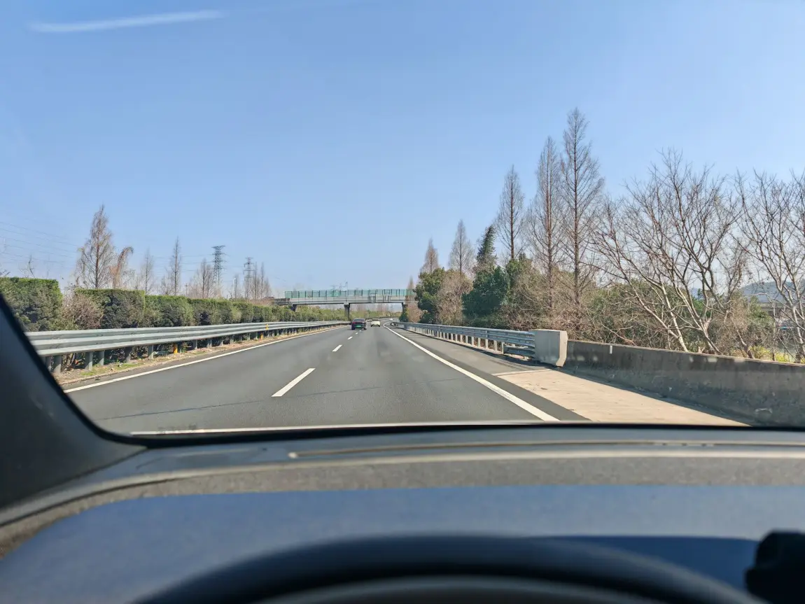 从家里出发时,天刚放晴,中控屏上的导航清晰指向梅山。上了高速,我果断开启辅助驾驶,在春日的暖风里,电耗比预想的友好,百公里能耗15.0kWh。