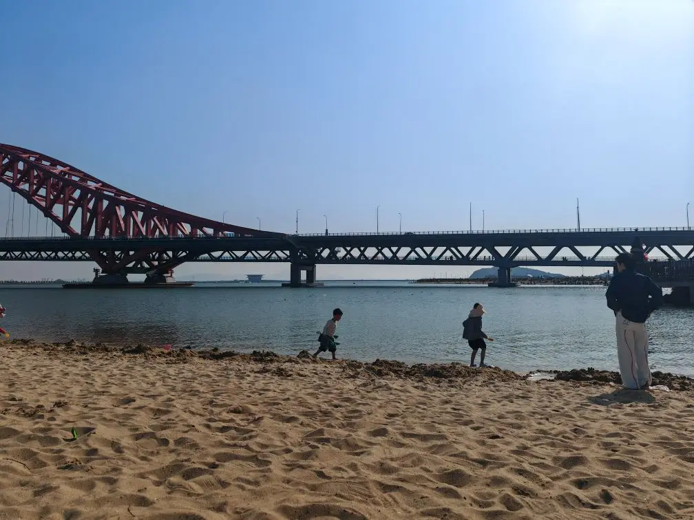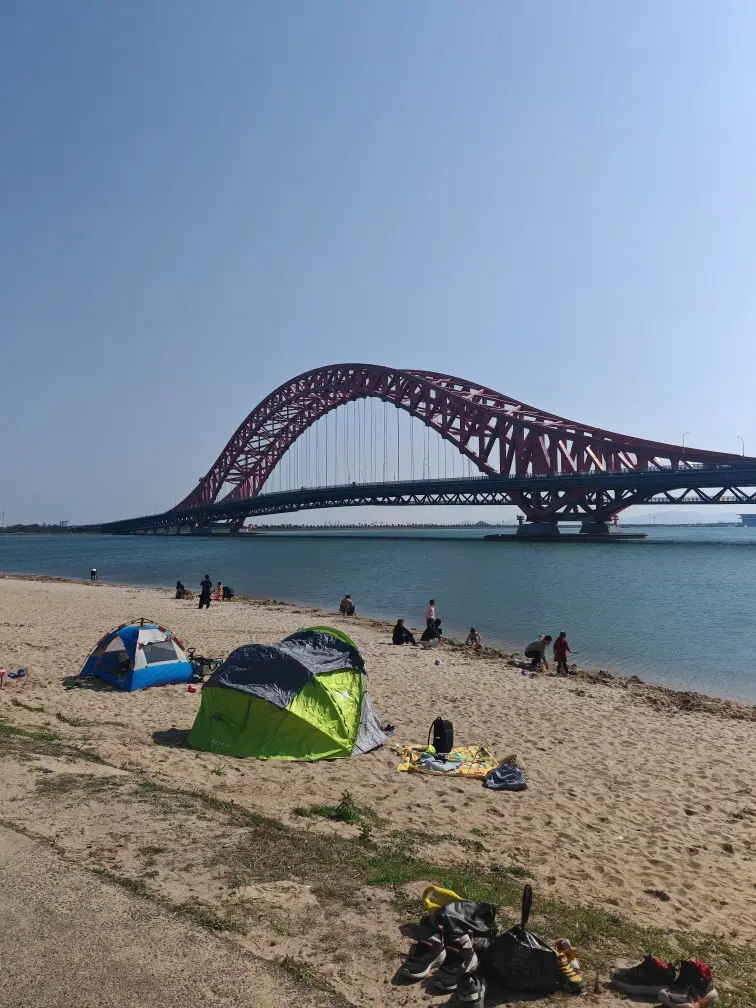 三月的风已经带着海的咸湿,朋友圈里的露营照勾得人心痒。索性开上车,直指宁波梅山那座红桥边的免费沙滩——听说那里的沙粒细软,海风不燥,是藏在城市边缘的春日秘境。