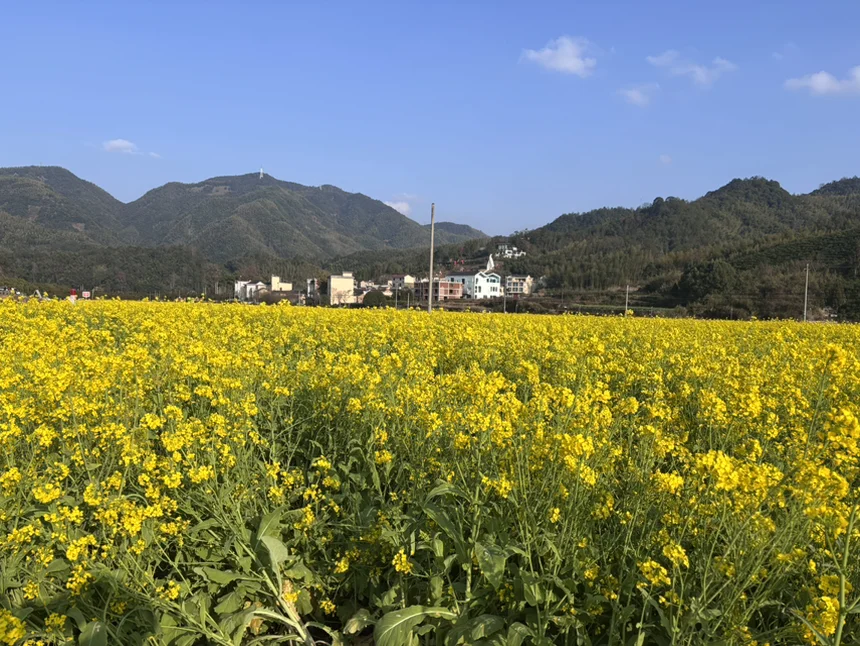 油菜花从不矜持,一开就开得满坑满谷。那些细碎的黄,攒着攒着,就成了泼天的颜色——不是那种怯生生的浅黄,是太阳淬过后的、滚烫的金黄。风过时,整片花海便起了波澜,一层追着一层,一直涌到天边。