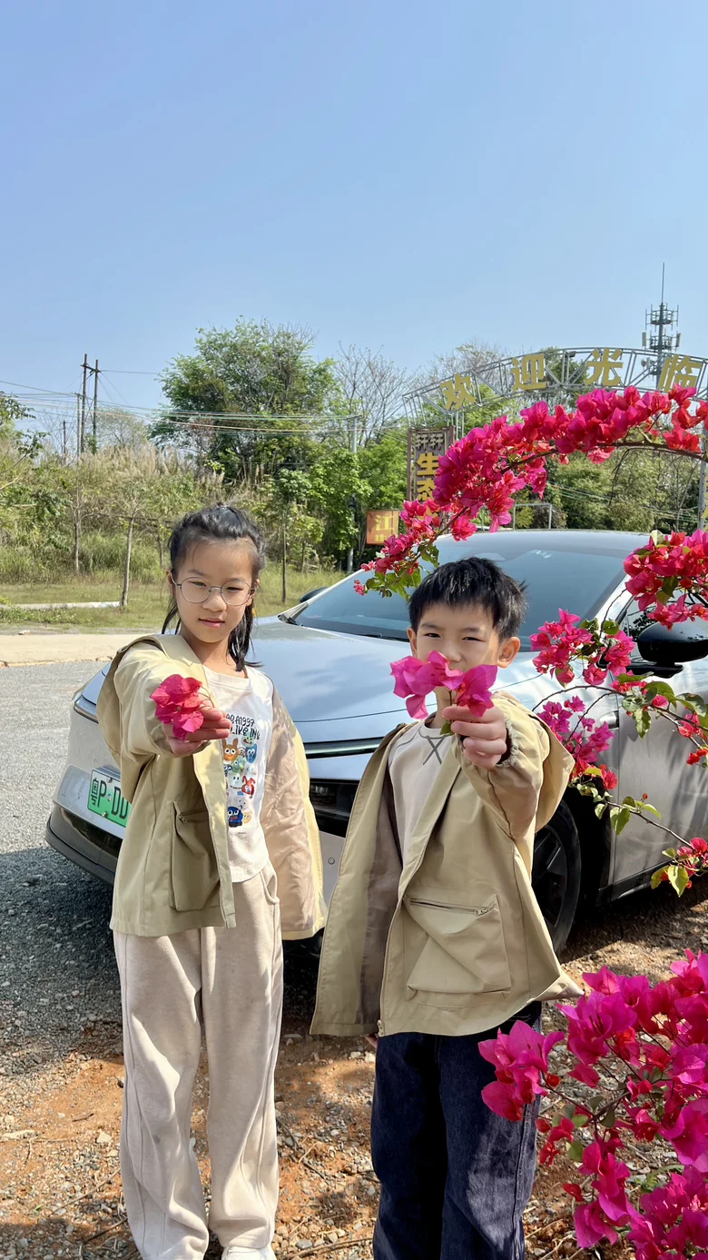 忍不住停下车,拉上家里的小宝贝👧