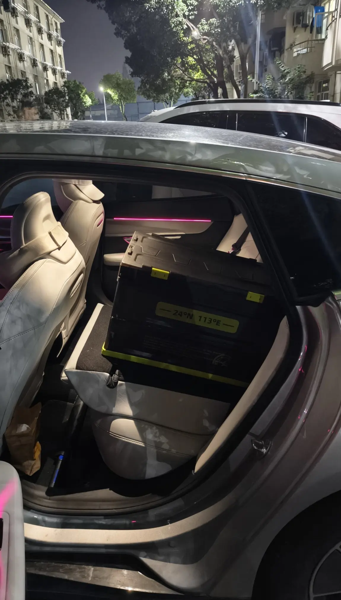 前一天晚上准备好装备,放到露营箱里,由于后备箱还放了帐篷椅子之类的,所以灵活的后排就显得格外重要了,正正好好放一个箱子,很稳,不会在途中来回晃。