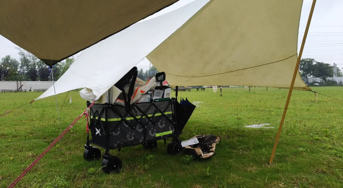 营地车也是小鹏官方的,超级好用,大轮胎所向披靡,满满一车东西从车里放到小推车里,再拉到营地,没有这个小推车真的不敢想该怎么搬过来。