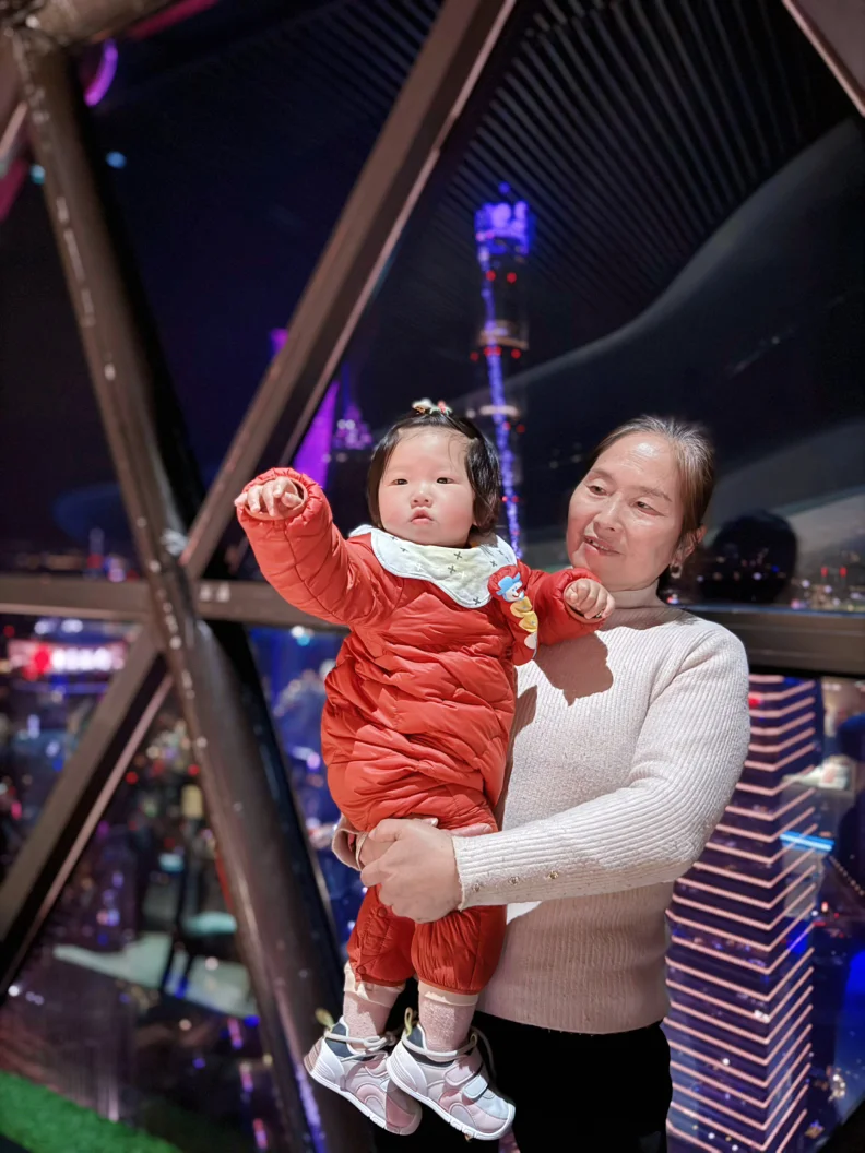 夜幕下在旋转餐厅里顺便和三件套合影留念。夜晚景色是真的漂亮,当然晚上游客也是挺多的,我们出来了,发现排队比进来时人流还要多。