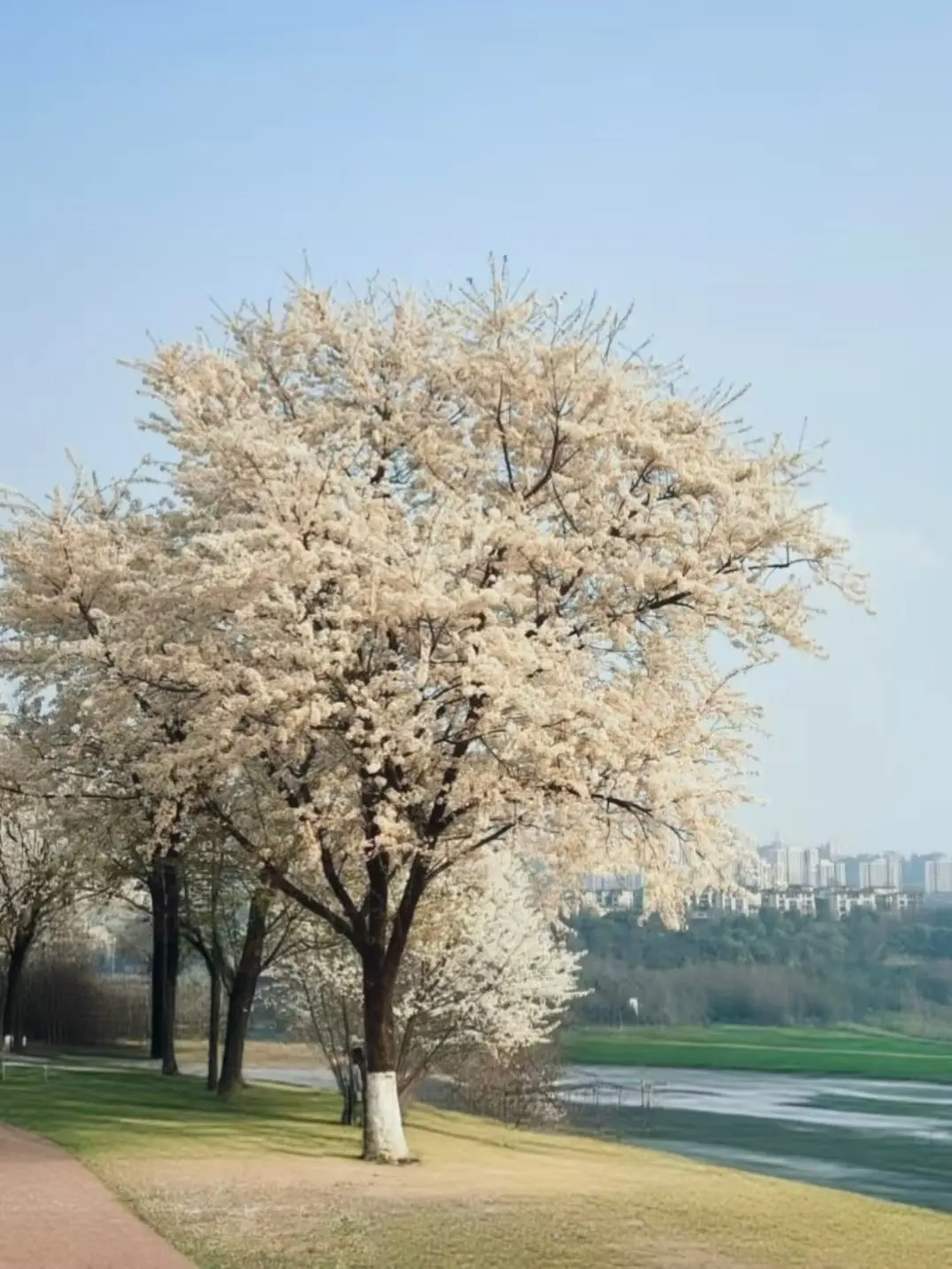 👗穿搭:米白/奶白针织+百褶裙,浅蓝衬衫也可;面料选飘逸款,江风一吹超灵动。❌避雷:深色大印花,避免与白樱冲突