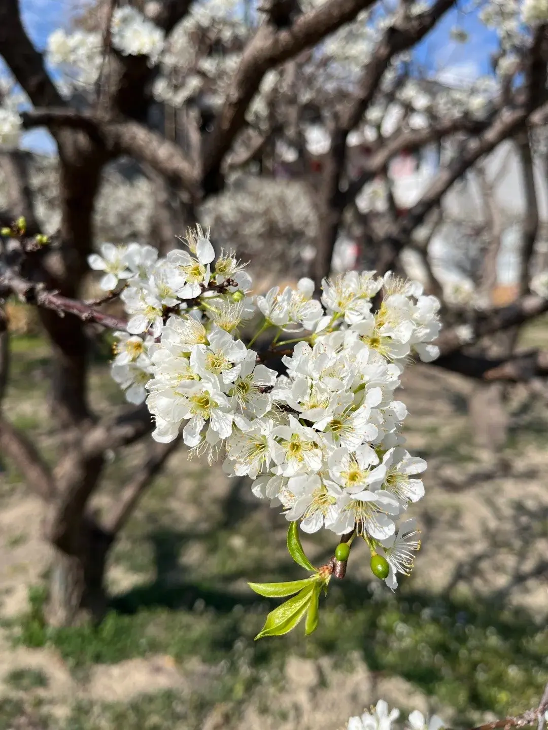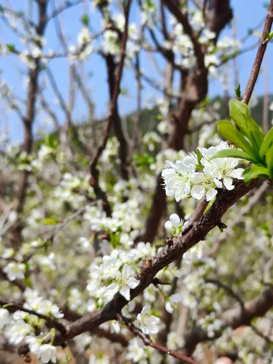 抵达山谷时,部分李花还在肆意盛放,但部分由于今年天气暖和也谢了不少,实属遗憾! 不然真的会有漫山遍野的雪白李花盛开的壮丽场景!近看朵朵素雅洁白,缀满枝头,微风拂过,花瓣轻扬似雪舞,淡淡幽香,十分沁人心脾。
