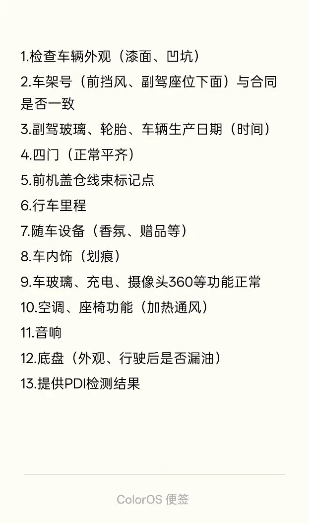 带着提前准备好的验车Tips,围着它转了三圈——漆面、轮胎日期、玻璃编号、出厂名牌螺栓痕,确认没有问题后再确认合同签字