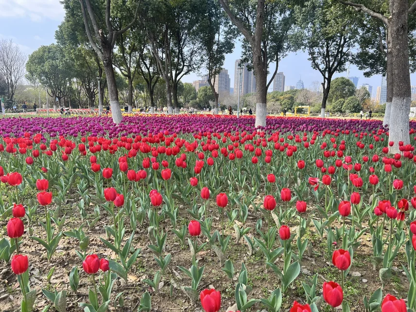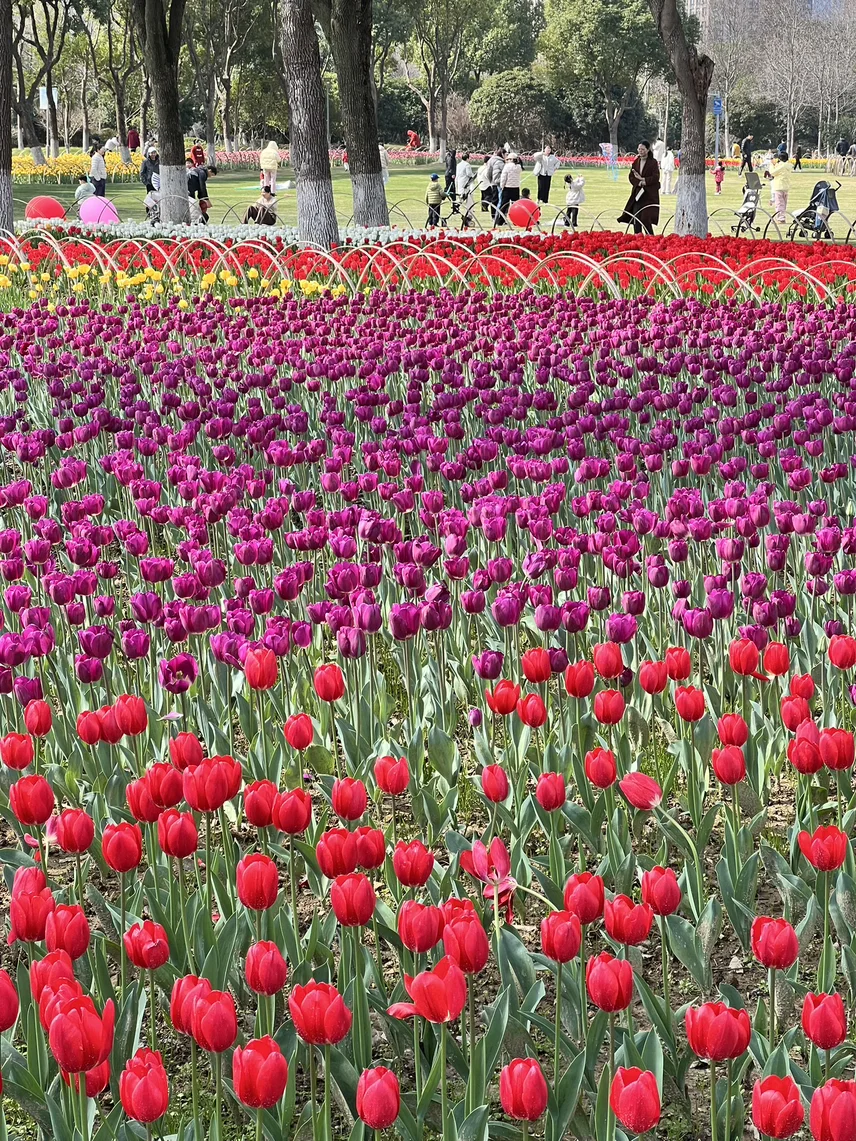p.s如果你对郁金香情有独钟,还有个地方推荐,宁波院士公园,免费停车3h,免门票!最关键的是郁金香遍地都是,一片花海。参考下图👇,拍得有点粗糙😂不过已经挡不住满屏盎然的春意了: