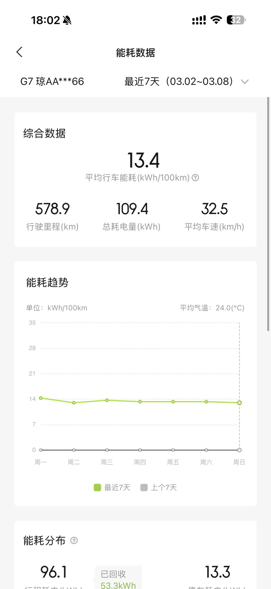 提车一周了,能耗平均在13.4,602大轮毂,空调基本在26℃左右,正常驾驶,这个能耗希望还有下行的空间。