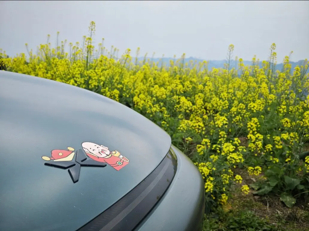 躺平后备箱,座椅按摩突突捶走冬乏,无人机追着车溜花田画圈圈。举手机框住小鹏流线车身——前脸怼着花浪,后视镜挂朵云,发朋友圈配文:“冬天欠的惬意用春天加倍浪回来!”
