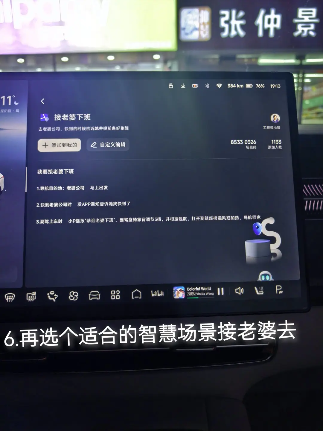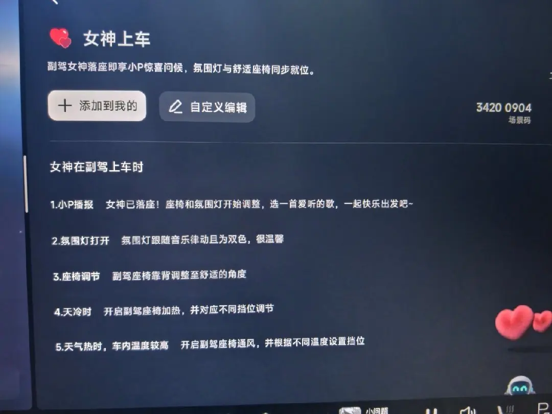 当你开车快要到达指定目的地时小P会通过APP发消息给她你快到了,并且车内温度座椅以调试完毕,仪式感满满👍
