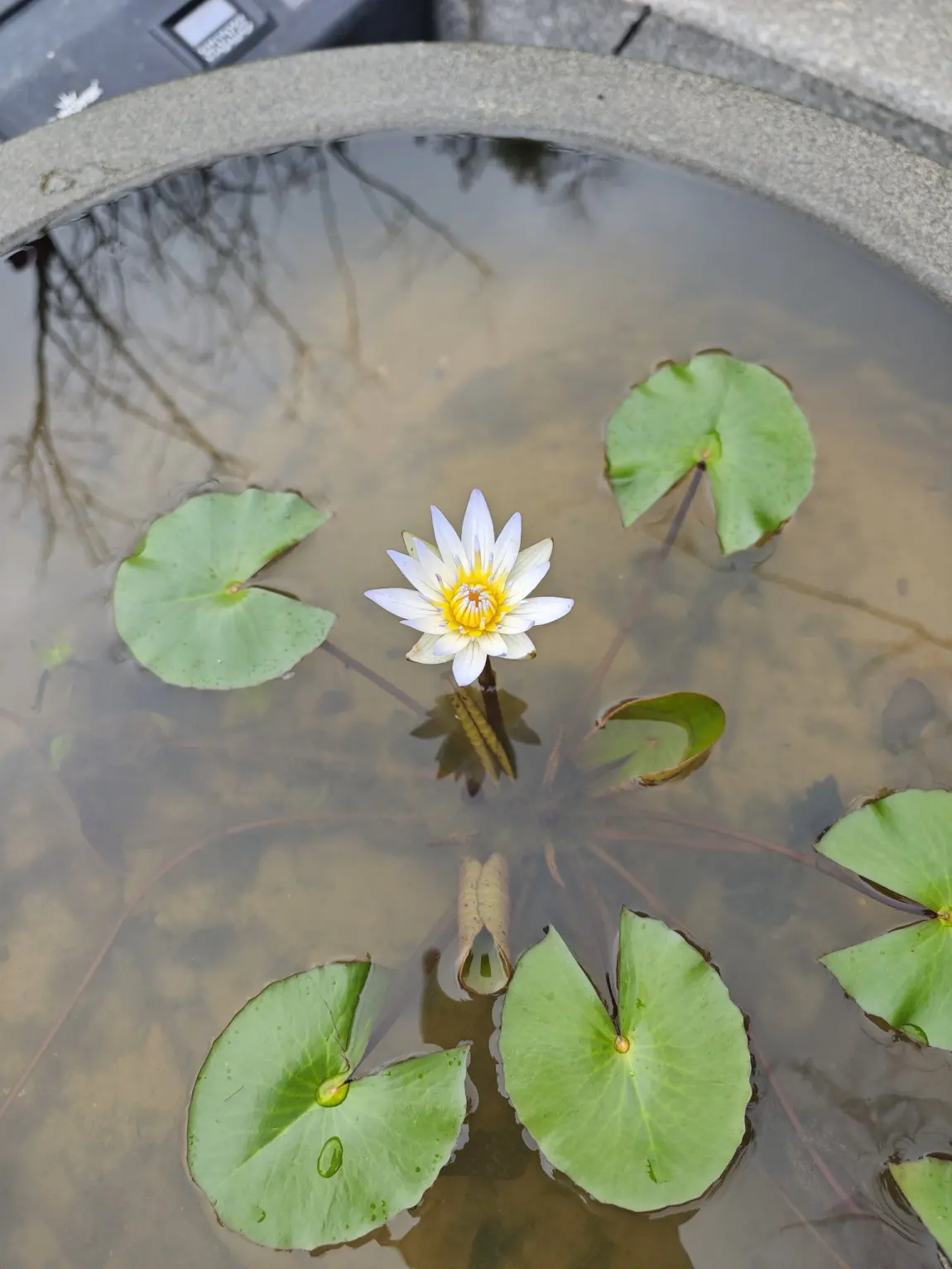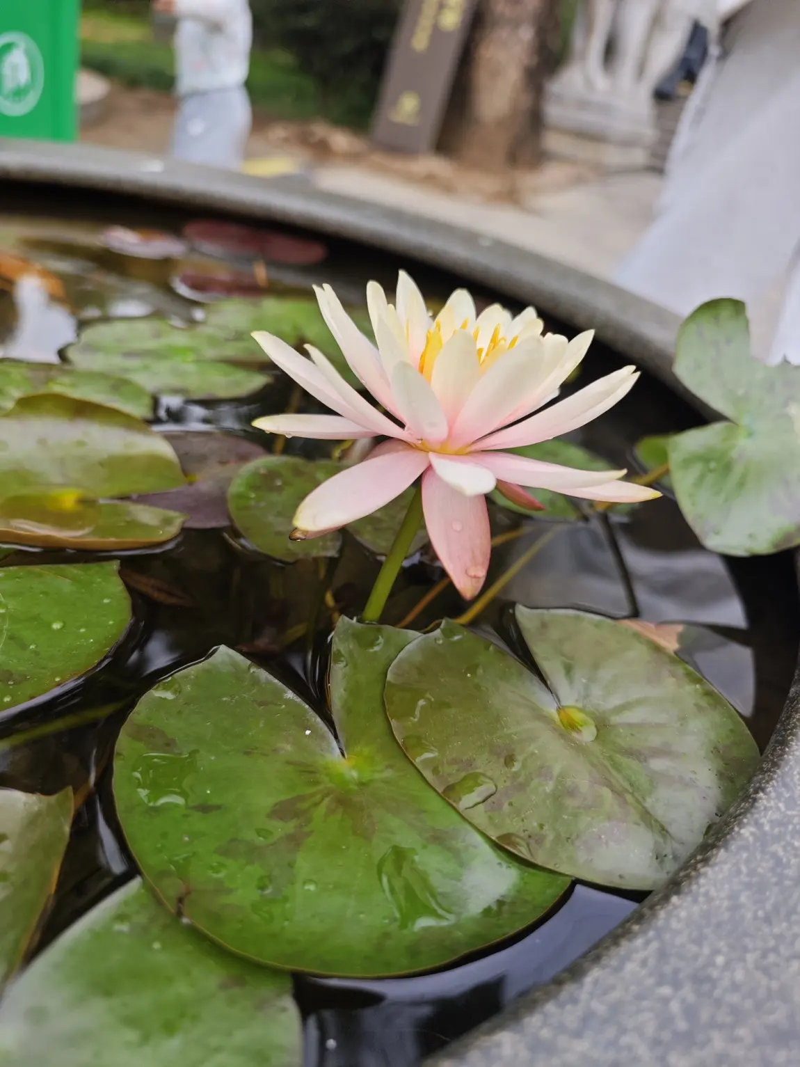 寺院内的大水缸种植浮水莲,处处莲花盛开。