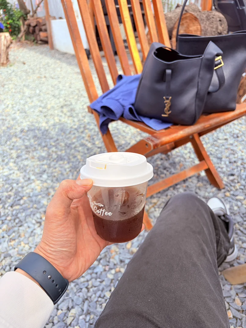 2. 帆布折叠椅: 咖啡馆人多的时候,我会把椅子拿到院子里,或者干脆在后备箱旁找个树荫坐下。新P7的后备箱开口很大,高度合适,坐在箱沿喝咖啡,意外地舒服。