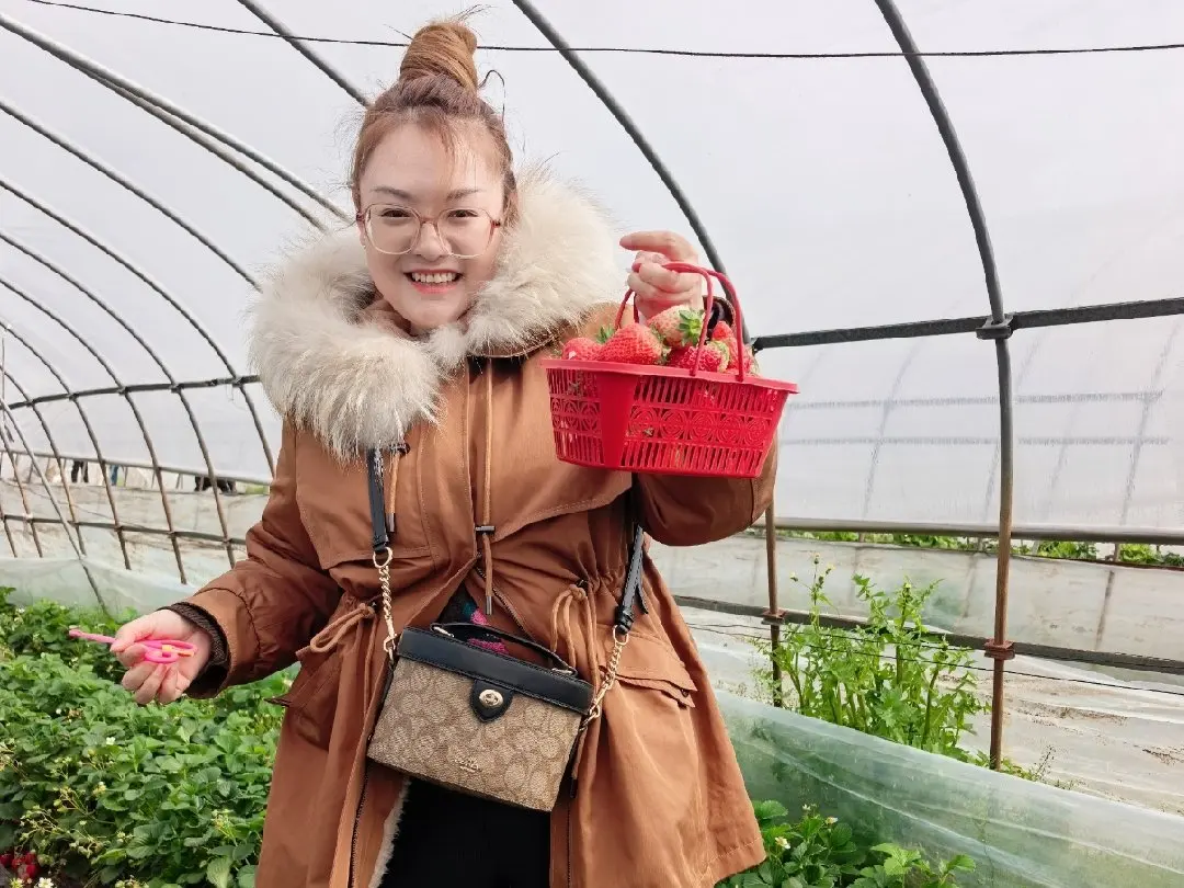 给鹏友们分享个采摘小经验:大棚里温差大,一定要穿易穿脱的外套;摘的时候捏着果柄轻轻拧,别扯藤蔓,这样能多结好几茬。