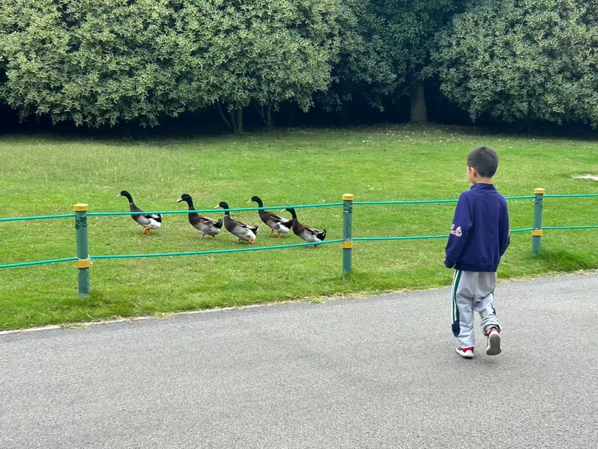 👇🏻春江水暖鸭先知,带娃去公园里赶鸭子下水😄