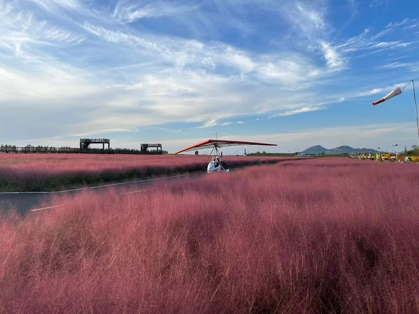 👇🏻参加围棋比赛间隙,在粉黛园里体验滑翔机